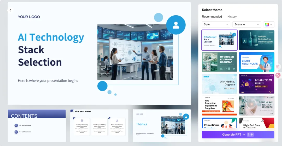 点击"生成PPT",在左侧选一个你顺眼的风格。