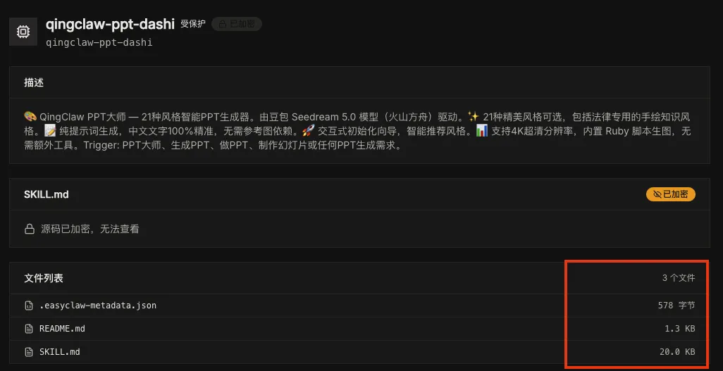 律师做 PPT 这个技能,也被我解决了。直接调用国内的出图模型,我做的这个技能叫 PPT大师 ,有 21 种风格可以选。说个简单的数据,为了做这个技能,我大概生成了将近 1000 张图片。