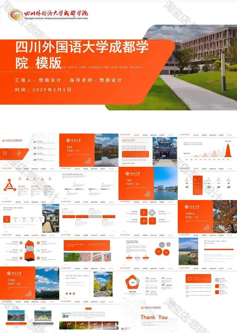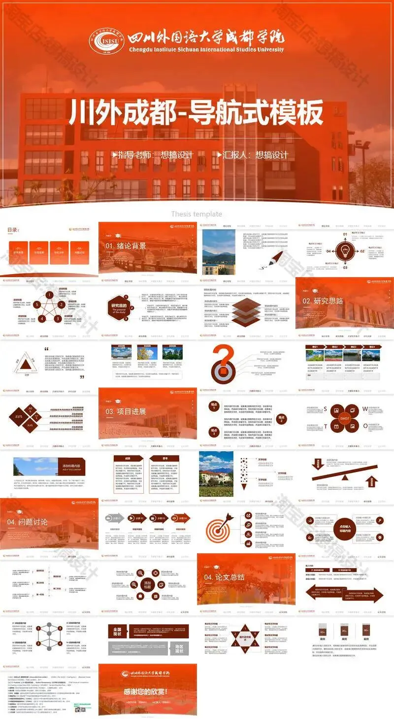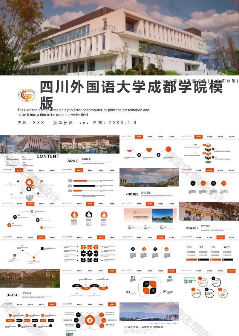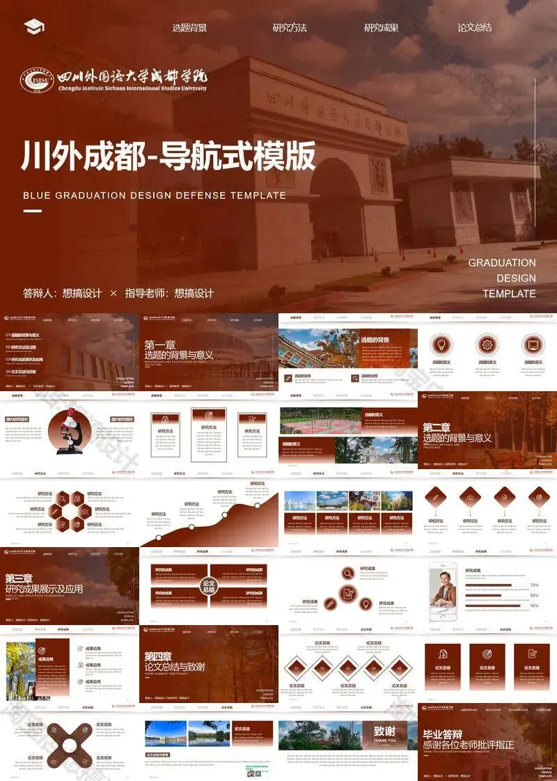 四川外国语大学成都学院毕业答辩PPT模板汇报幻灯片课件总结