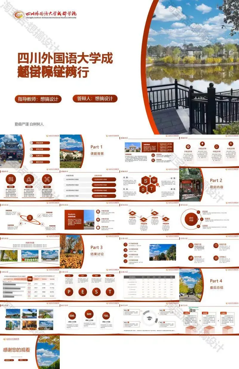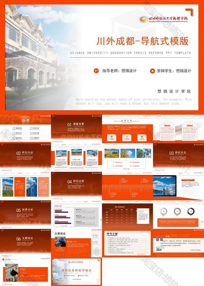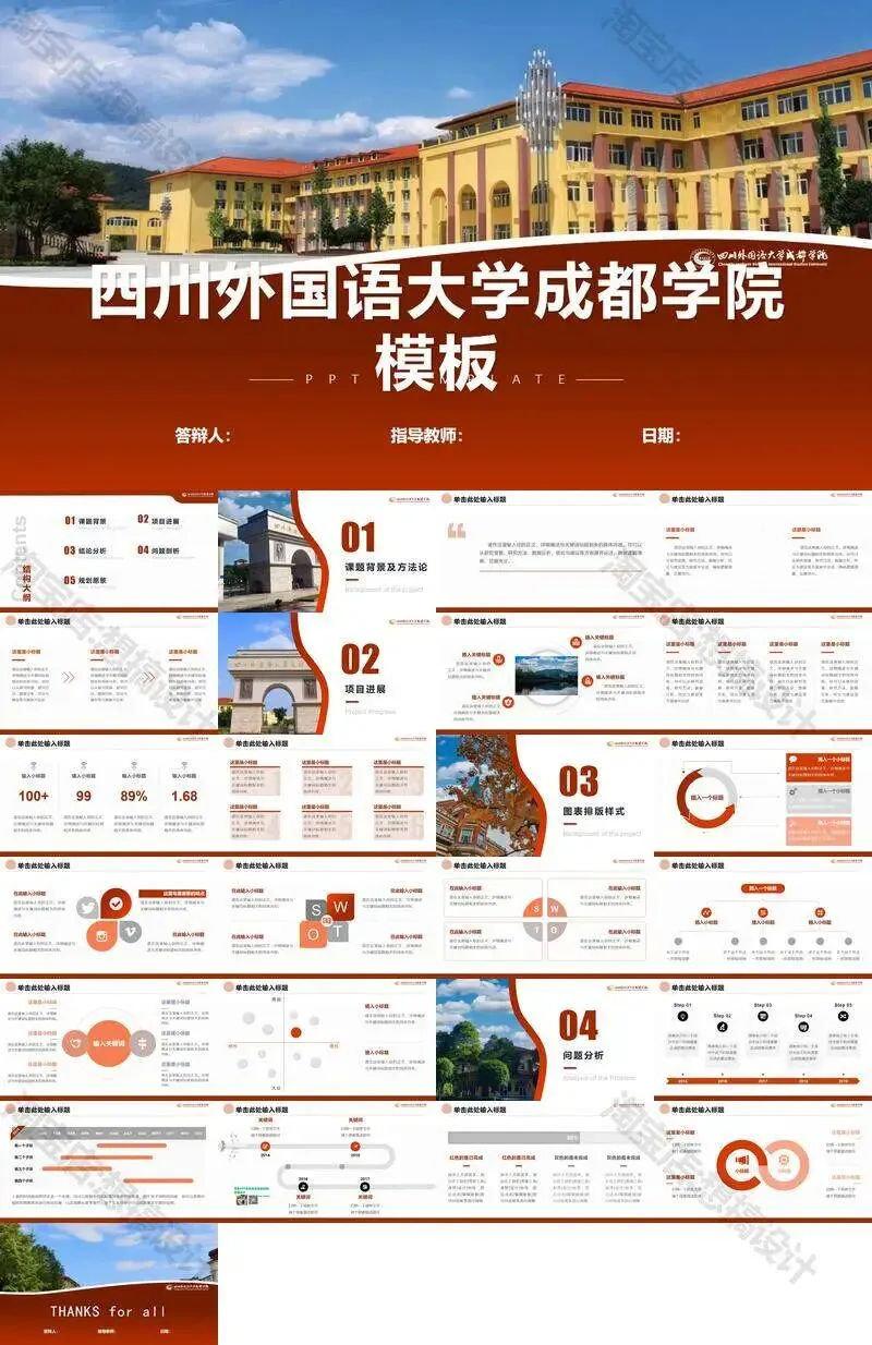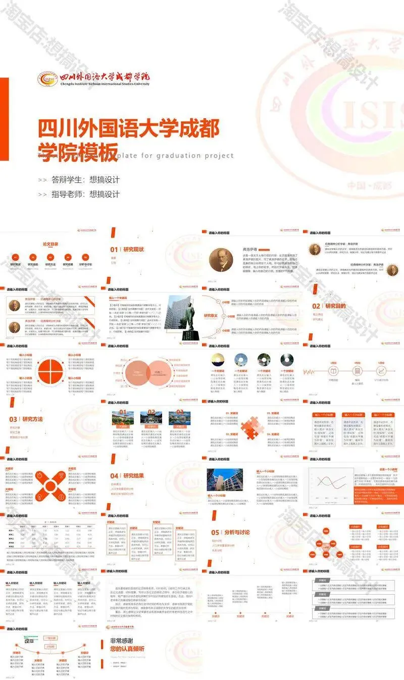 >四川外国语大学成都学院毕业答辩PPT模板汇报幻灯片课件总结