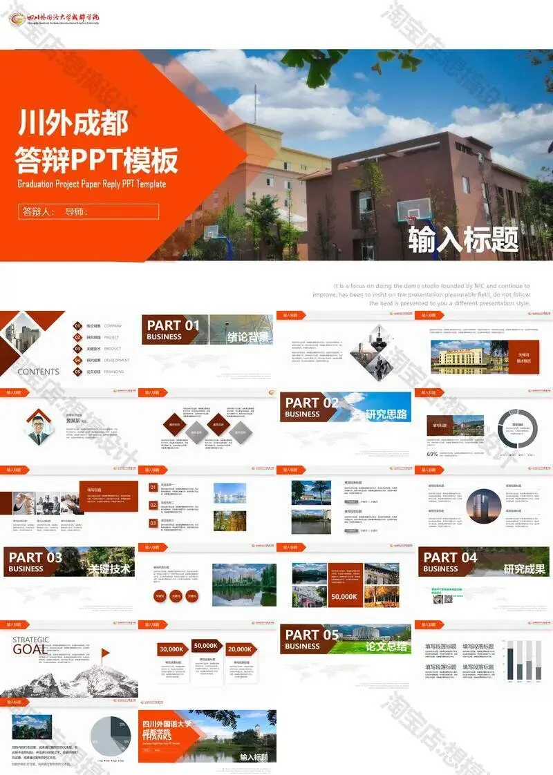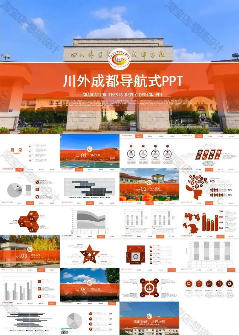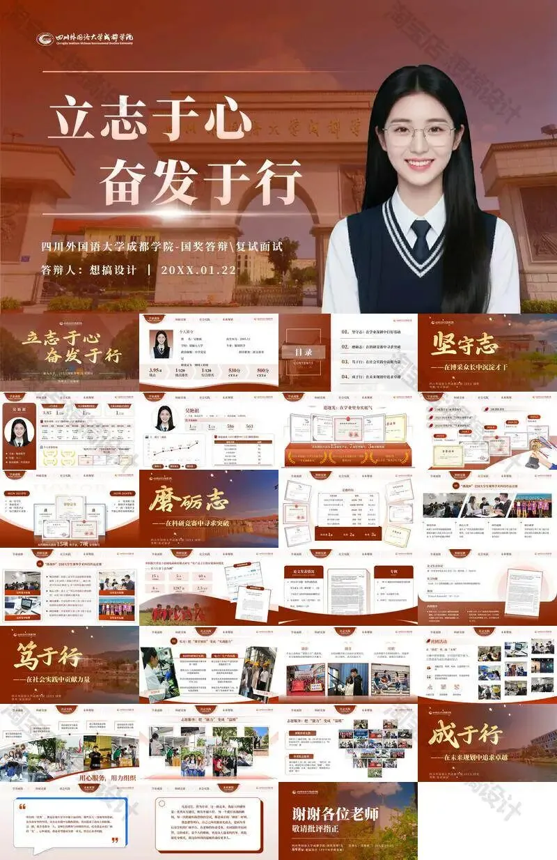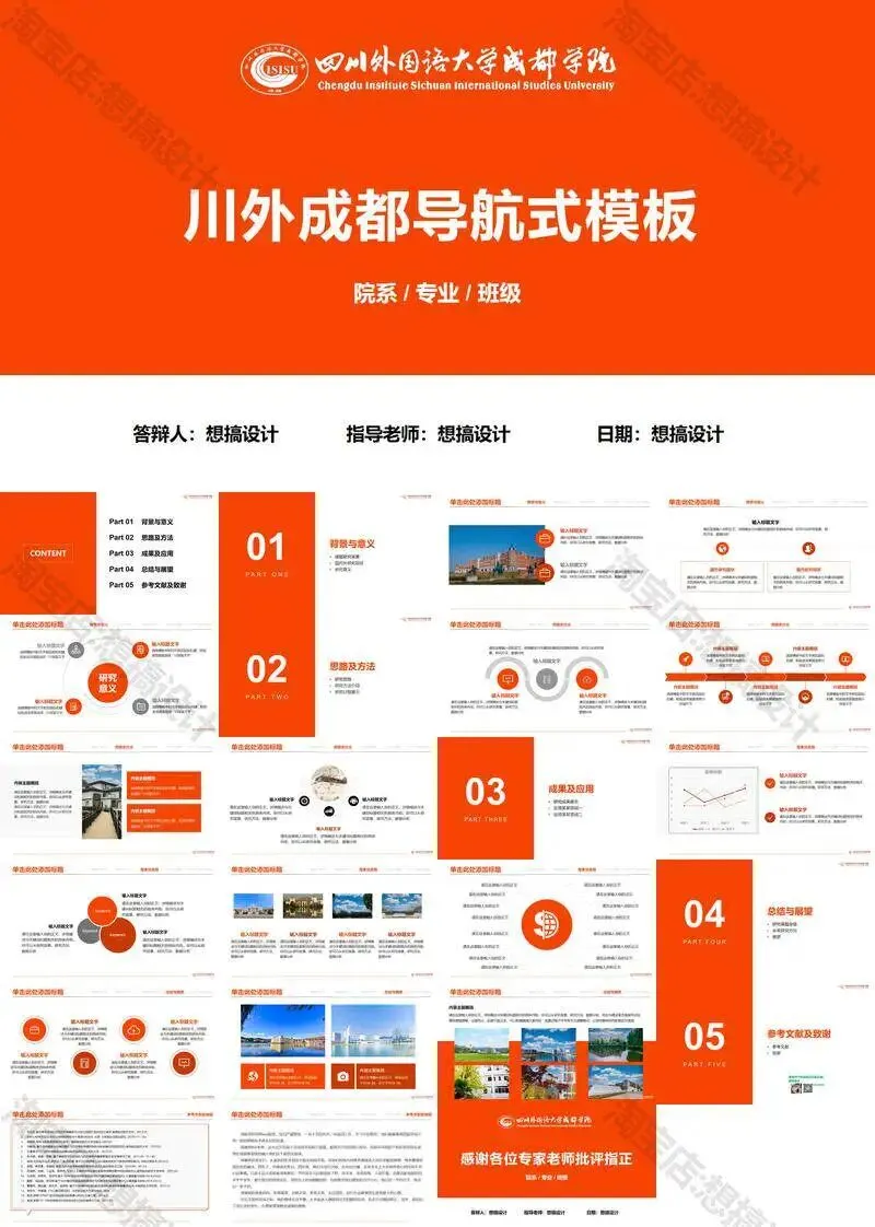 >四川外国语大学成都学院毕业答辩PPT模板汇报幻灯片课件总结