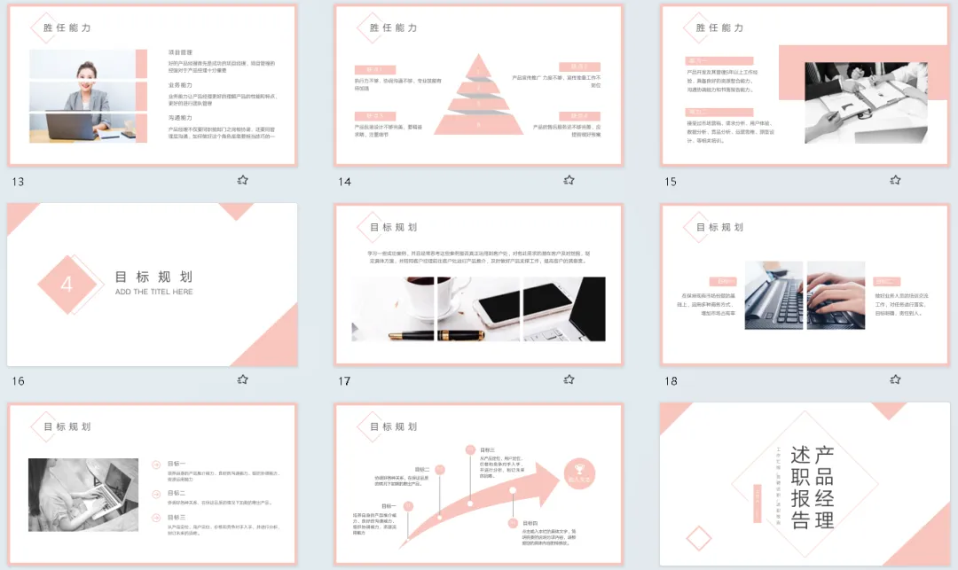 【工作总结484】产品经理述职报告PPT模板季度总结案例