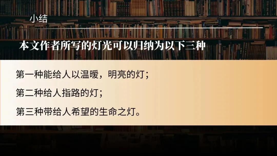 本文是巴金的散文。文章以"灯"为线索,从现实生活中的灯光写到记忆中的灯,再到心灵的灯,于平淡叙述中寄托对光明、温暖与希望的向往。作者结合抗战背景,通过"在这人间,灯光是不会灭的"的信念,展现知识分子在黑暗中坚守理想的精神境界。全文语言质朴含蓄,情感深沉,体现了巴金"讲真话"的创作风格与对人性光明的执着追求。