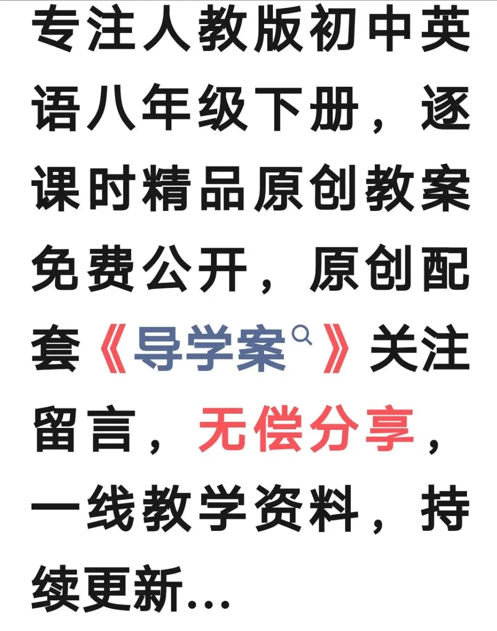 人教版八年级下册英语Units 1-3原创详细教案和导学案合集分享(还有整本书单元试卷)