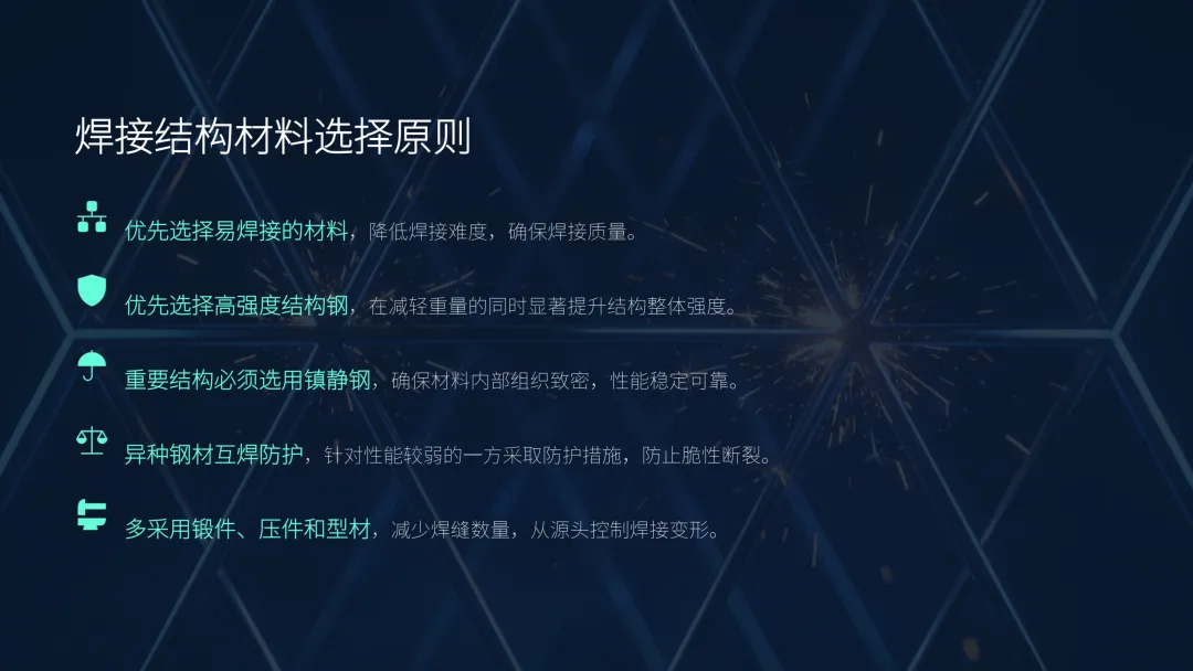 优先选用高强度结构钢,提升焊接结构的承载能力;