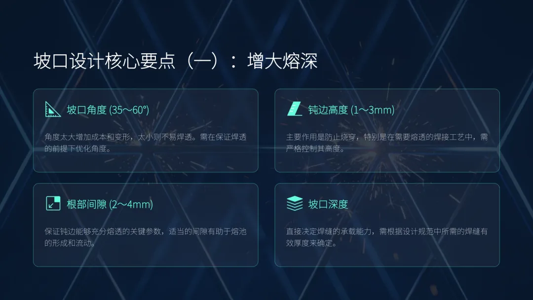 坡口设计的核心是“增大熔深、保证强度、控制变形”,先分清两种焊缝,再掌握设计要点:
