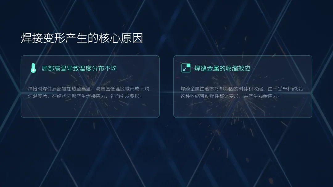 焊接变形的本质,是“应力+收缩”共同作用的结果,核心原因有两个: