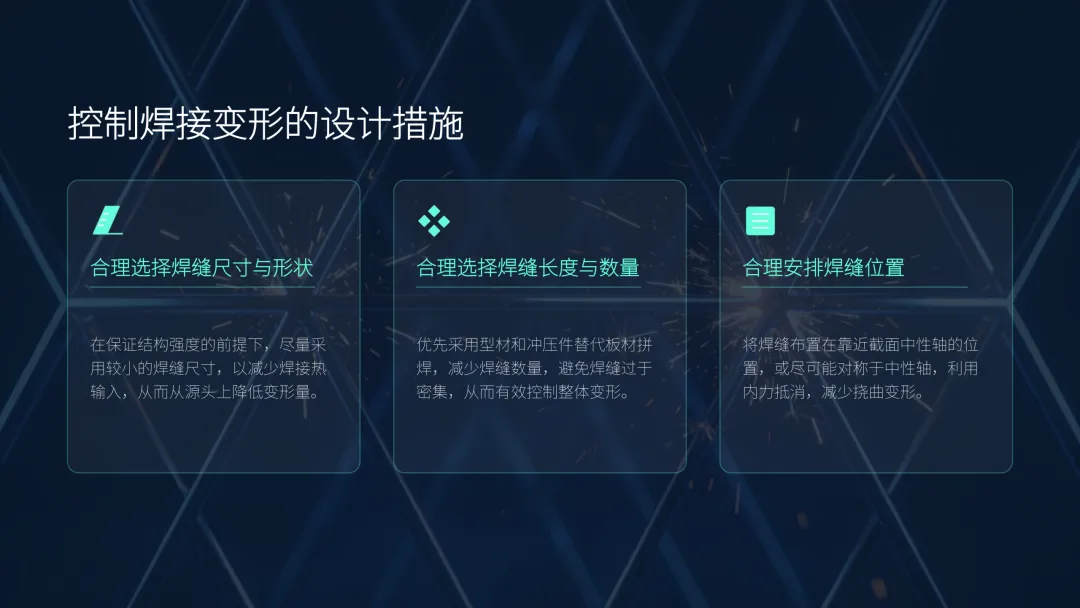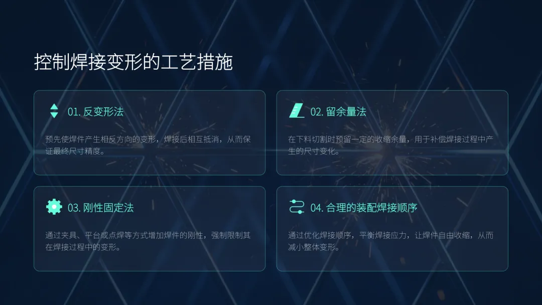 除了前期的设计措施(合理选焊缝尺寸、数量、位置),现场操作中,这4种工艺措施最实用: