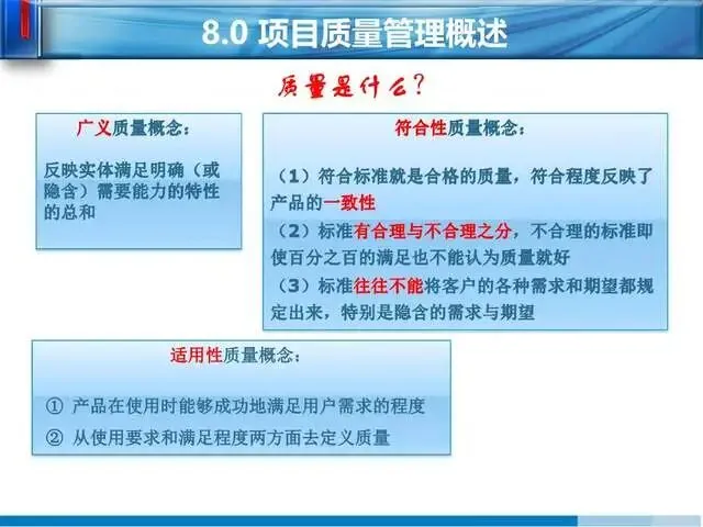 项目质量管理,核心就是保证项目成果符合要求、一次做对、少返工、可交付,完全适配 ISO 9001、项目管理 PMP、工程 / 研发 / 信息化项目通用。