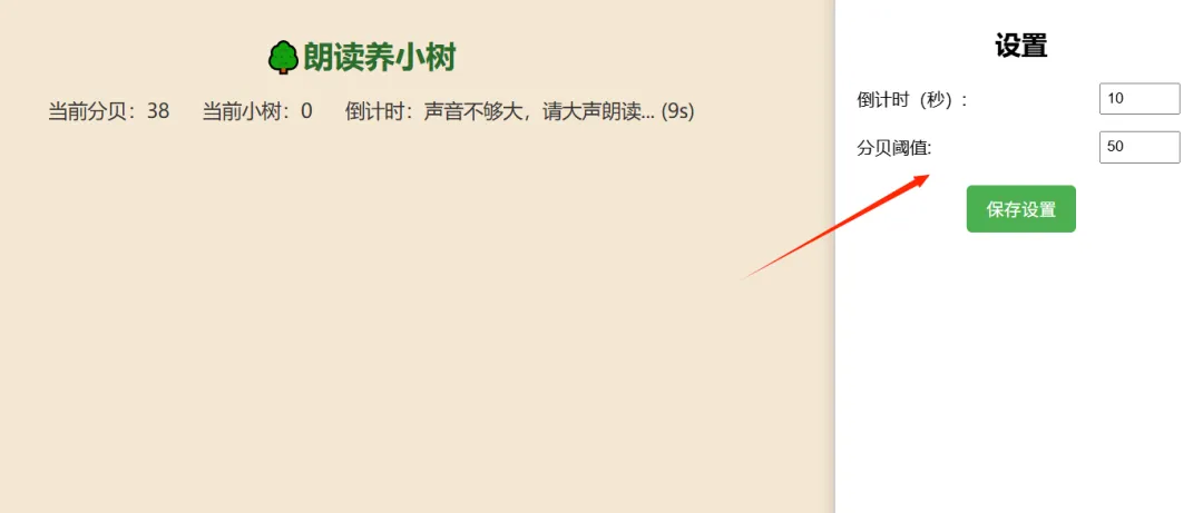 4、声音越大,小树越多,默认两个小树苗合成一棵大树