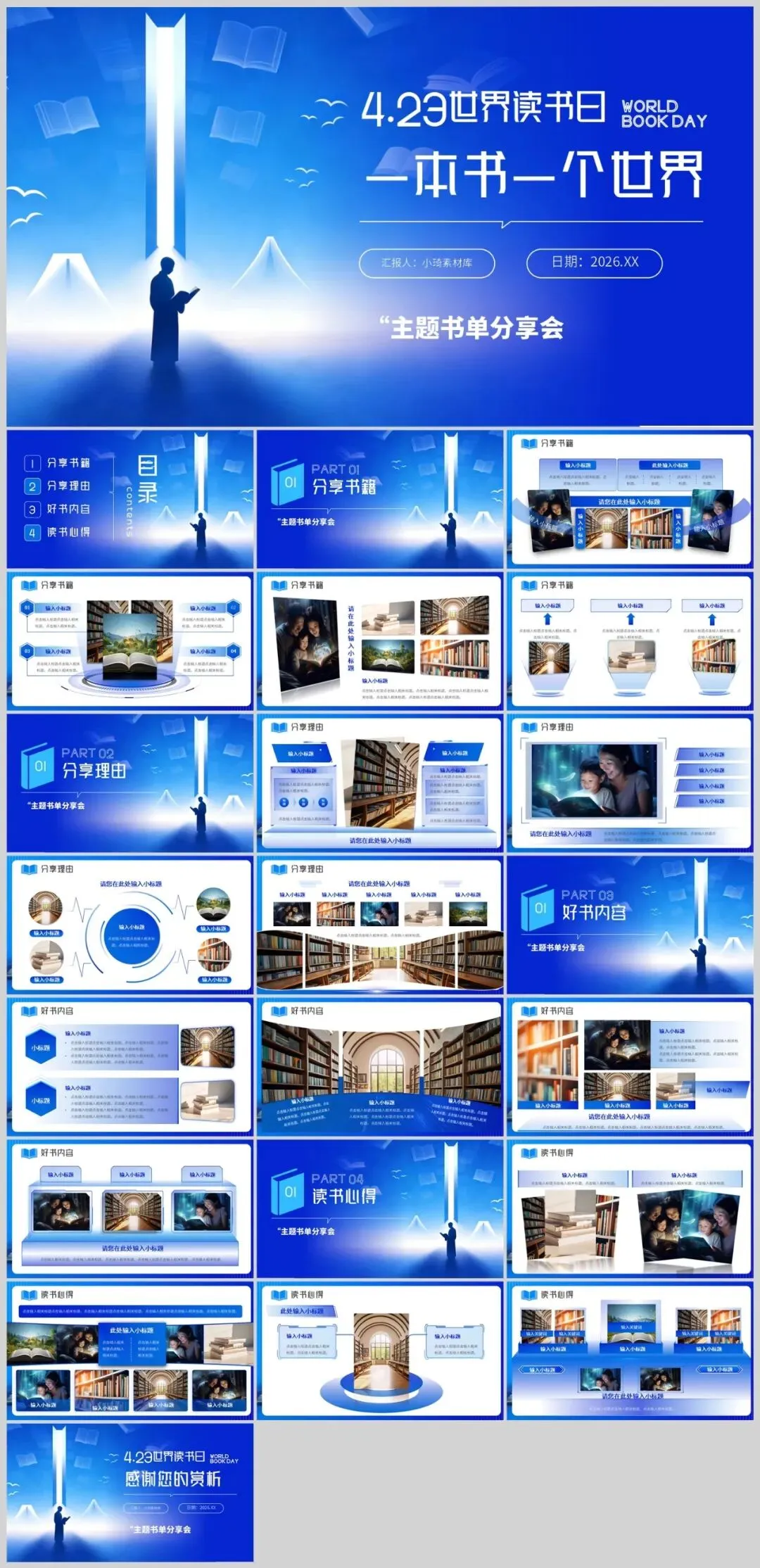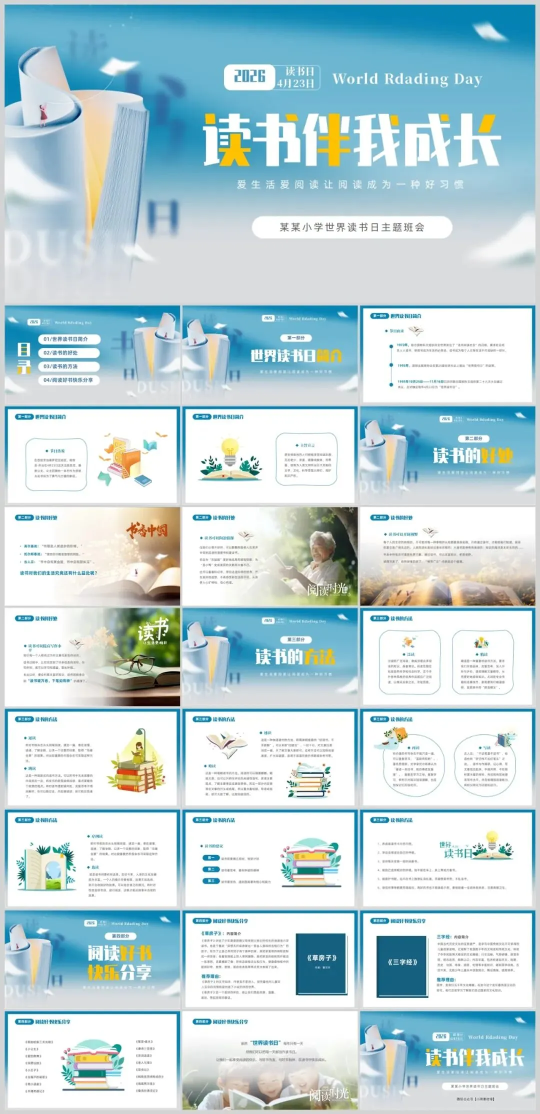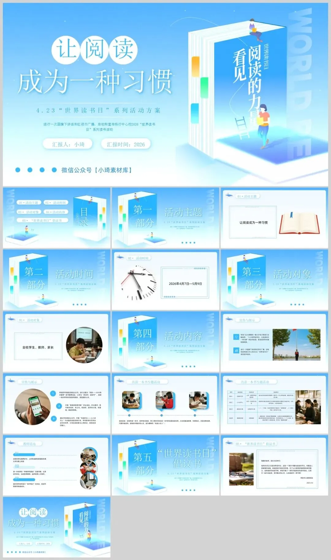 【2386期】世界读书日读书分享会主题PPT模板,让阅读成为一种习惯!