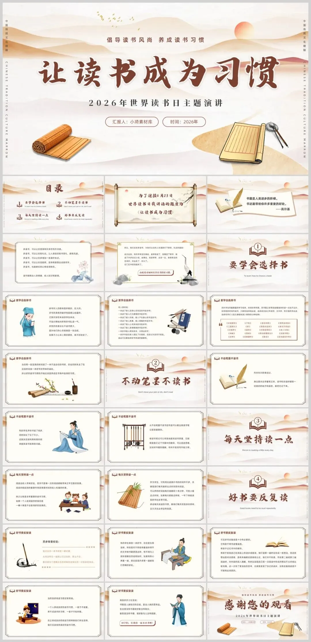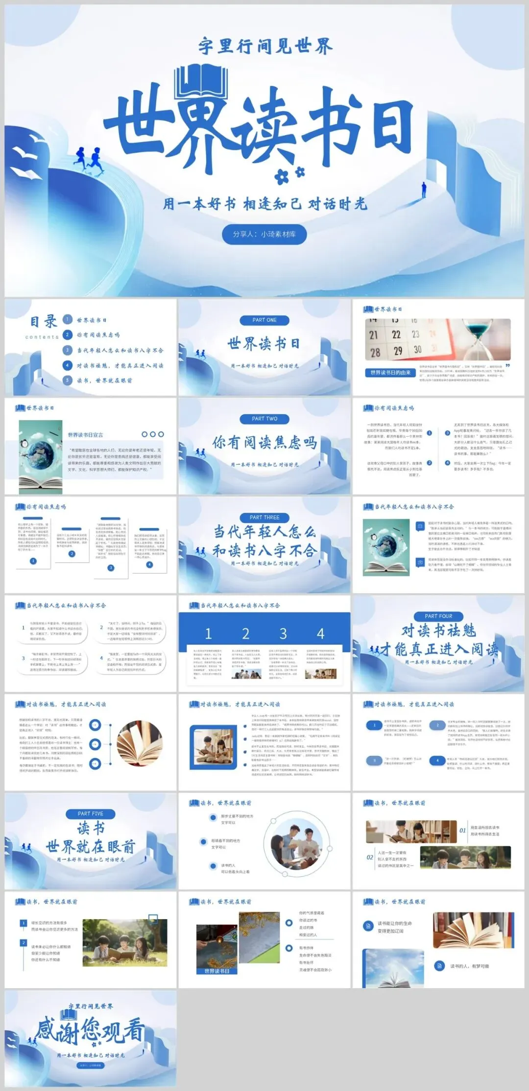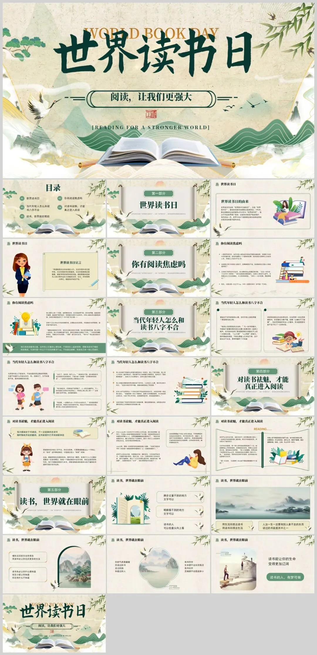 【2386期】世界读书日读书分享会主题PPT模板,让阅读成为一种习惯!