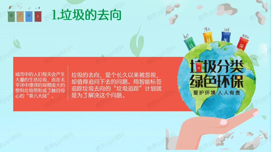 亲爱的同学们,大家好!今天我们的班会主题是“垃圾分类,从我做起”。首先,我想请大家看一张图片(指向PPT第1页)。在太平洋上,有一个比我们国家还要大的“垃圾岛”,它被称为“第八大陆”。大家想不想知道,我们每天扔掉的垃圾,最后都去哪里了?