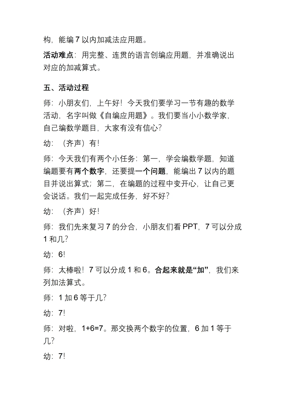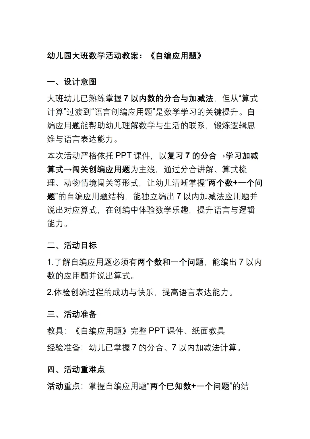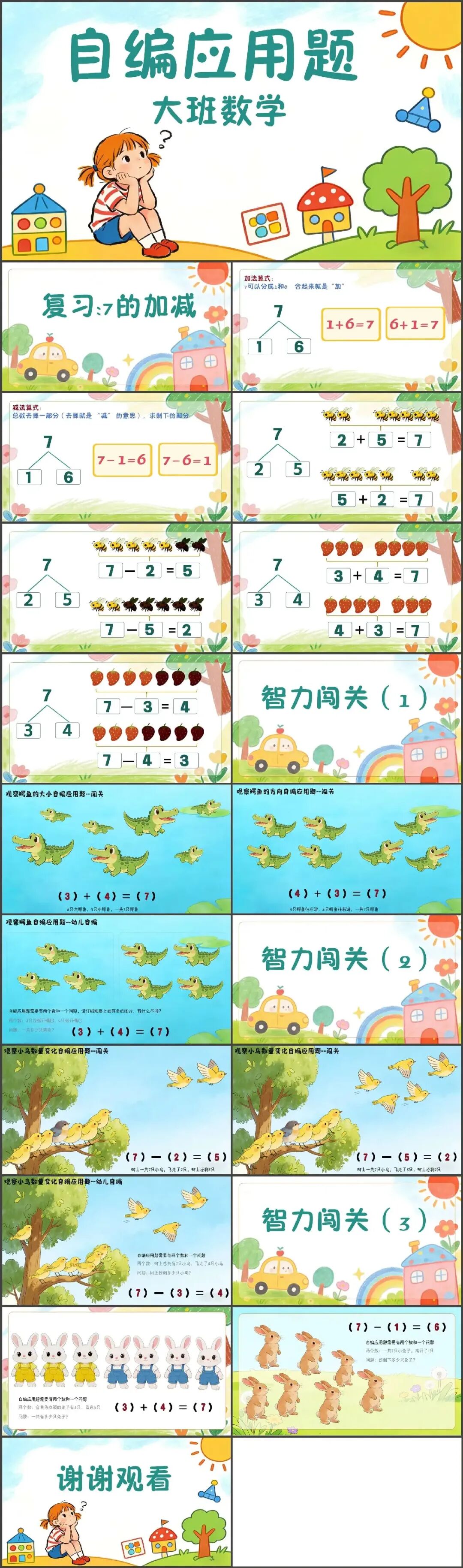 >幼儿园大班数学《自编应用题》动态PPT课件+教案+说课稿+操作教具图