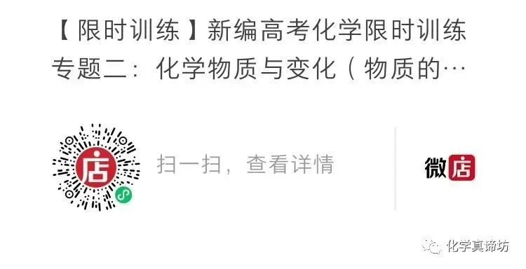 如果你觉得好,你可以分享化学真谛坊公众号到你的化学同事朋友群与学生群,让更多人受益,就是我坚持的动力,谢谢!自编的分享的过期资料可以在学科网下载:https://www.zxxk.com/user/30893/softlist/https://shop.xkw.com/700027https://www.zxxk.com/user/30893高考化学限时训练(共10个专题)