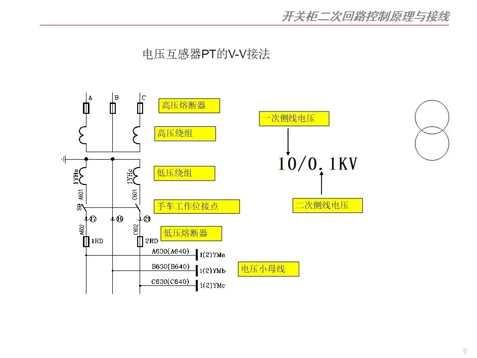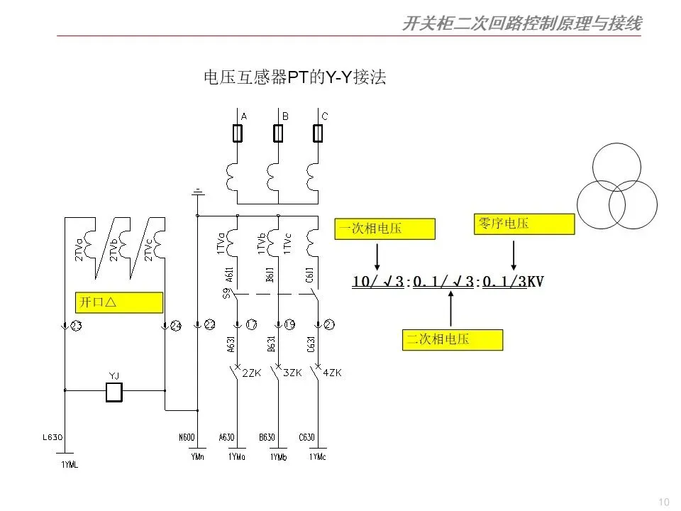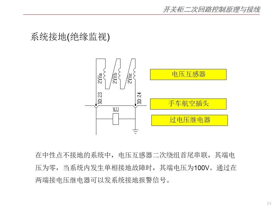 在中性点不接地的系统中,电压互感器二次绕组首尾串联,其端电压为零,当系统内发生单相接地故障时,其端电压为100V。通过在两端接电压继电器可以发系统接地报警信号。