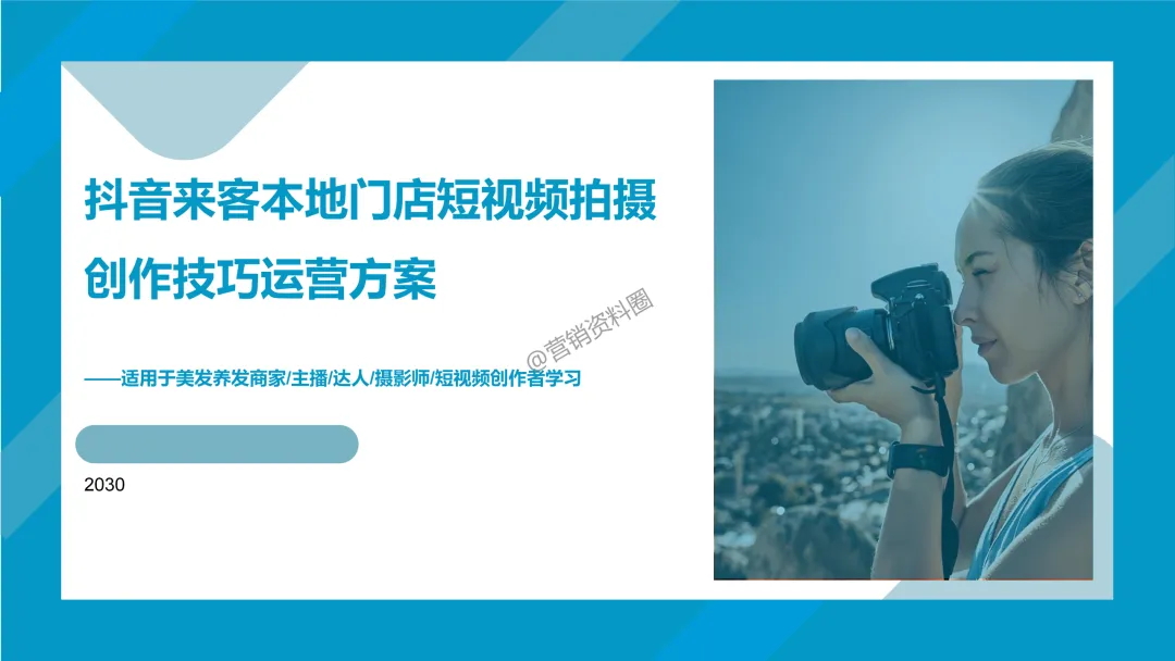 嗨,我是资料君,今天分享抖音短视频拍摄创作技巧运营方案教程ppt!