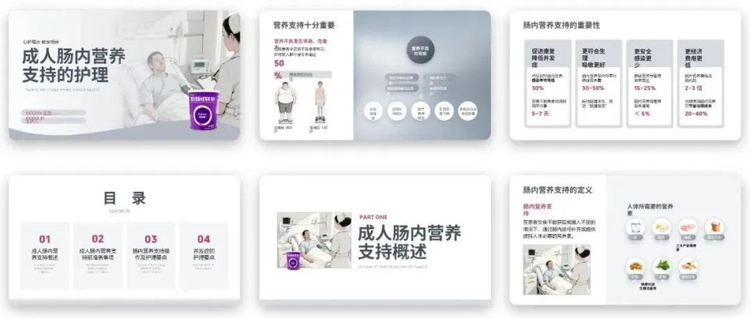 成人肠内营养支持的护理PPT,解读胃造瘘喂养途径的核心特点与适用场景,帮助护理人员规范开展胃造瘘患者的喂养护理与长期照护。