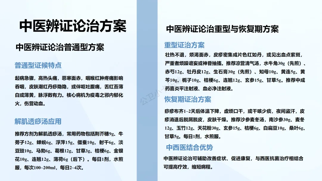 为进一步提高各类传染病规范化、同质化诊疗水平,指导各级医疗机构规范做好传染病医疗救治工作,国家卫生健康委会同国家中医药局,结合近年来相关传染病流行、发病情况及研究成果、诊疗技术进展,组织制(修)订了鼠疫、霍乱、炭疽、细菌性痢疾、流行性脑脊髓膜炎、百日咳、猩红热、布鲁氏菌病、黑热病、水痘、发热伴血小板减少综合征等传染病诊疗方案,形成了相关传染病诊疗方案(2023年版)。其中,《猩红热诊疗方案(2023年版)》作为附件7之一印发,供参照执行。