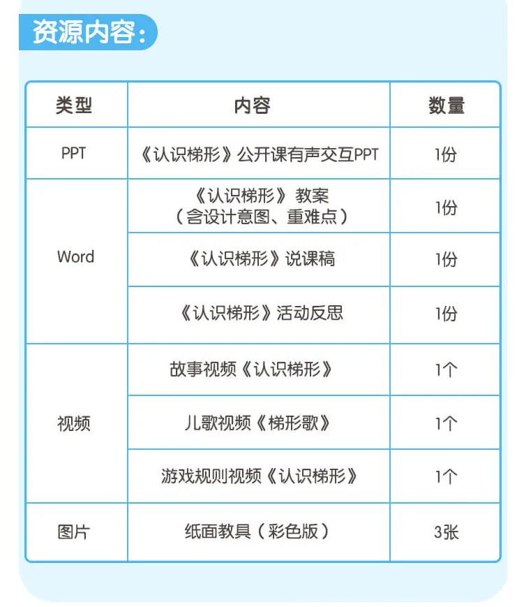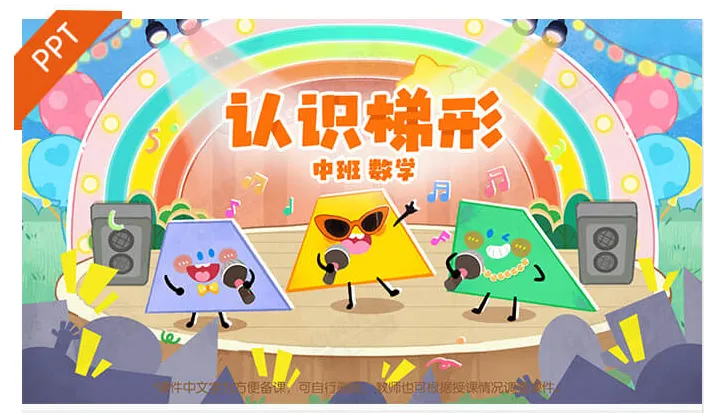 >幼儿园中班数学——《认识梯形》有声PPT+教案+说课稿+活动反思+故事视频+儿歌视频分享
