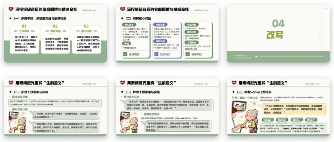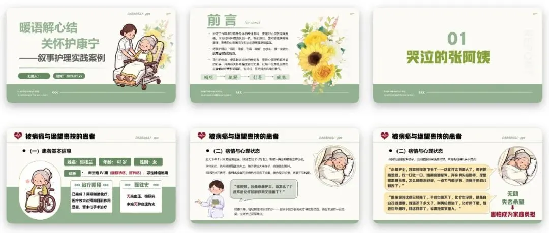 叙事护理PPT的案例中,正是通过全面的护理评估,不仅掌握了患者的病情与治疗情况,更挖掘出了患者心理痛苦的三大根源,为后续的叙事护理干预提供了全面的信息支撑。