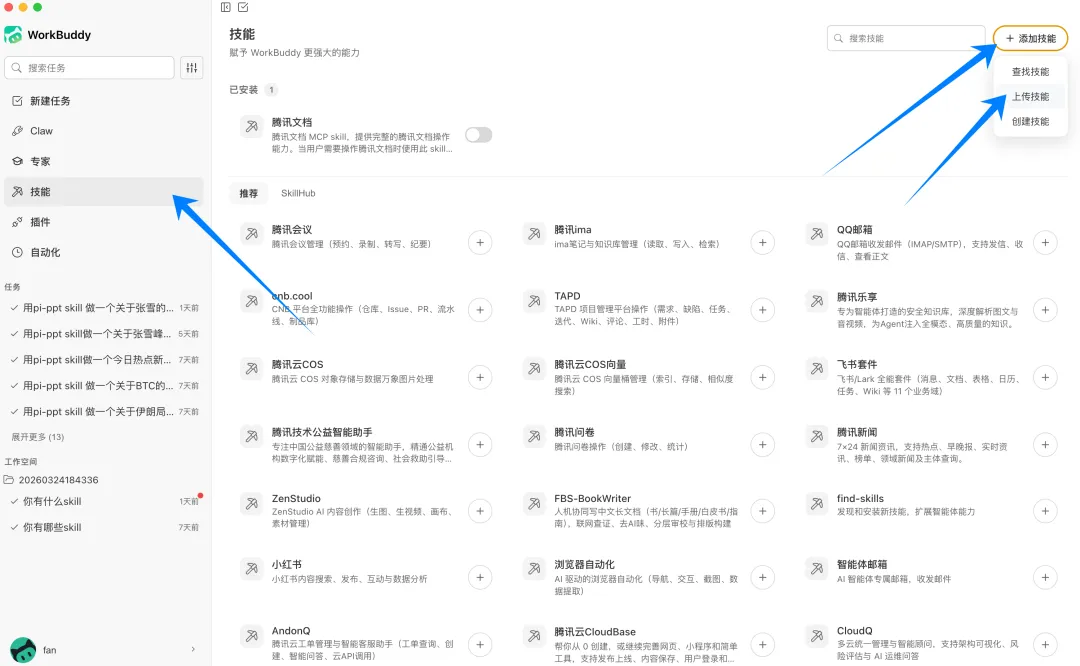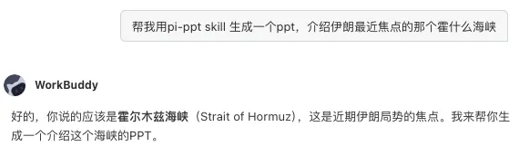 每个Claw的操作可能略有不同,以下内容均以腾讯的本地龙虾Workbuddy为例演示。2. 下载Pi-PPT-skill