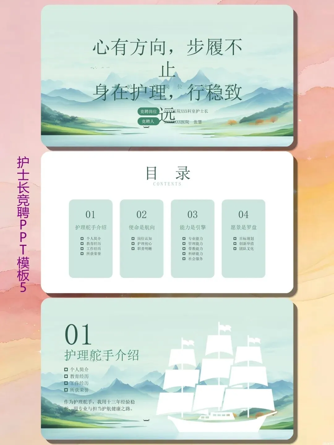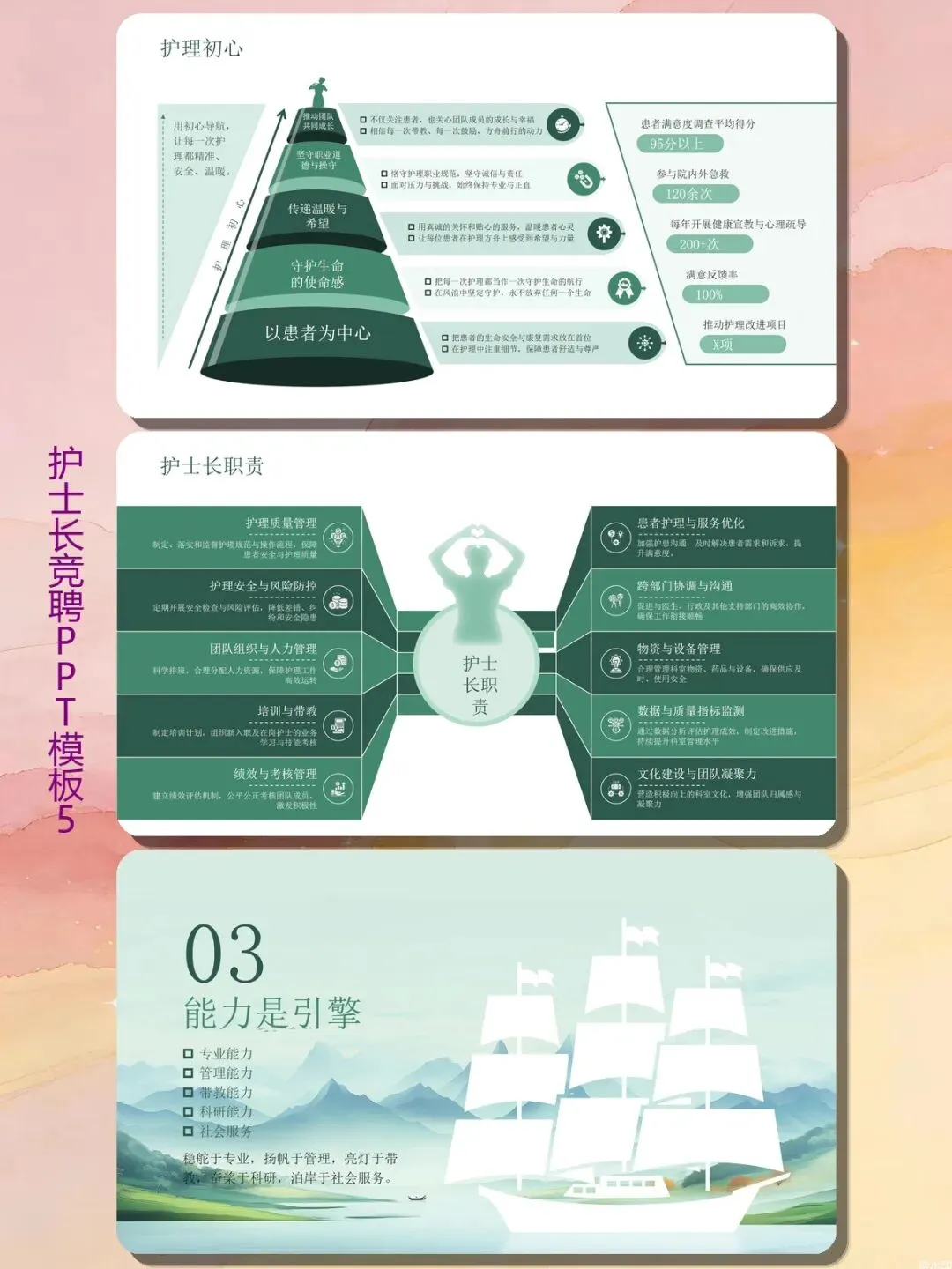 工作七八年,业务能力没话说,可真要写一份护士长竞聘的汇报PPT,你是不是也对着空白幻灯片发过呆?不知道怎么把“我挺会带人”变成让领导点头的数据?别愁,这份《护士长竞聘岗位陈述报告》PPT模板,就是给你准备的“上岸参考书”。
