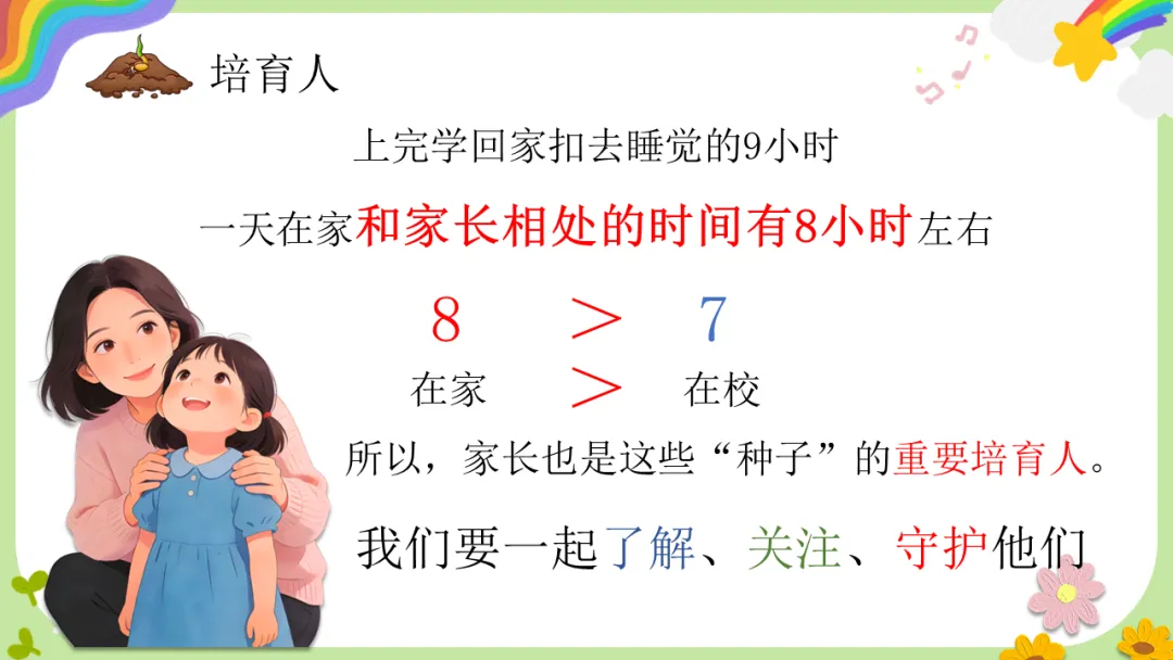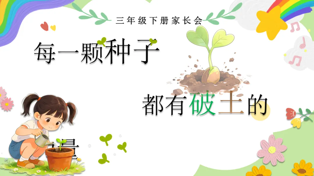 各位家长,晚上好!欢迎大家来到我们三年(2)班的开学家长会,我是本班的班主任。今天这场家长会,主题是 “每一颗种子 都有破土的力量”,希望和各位家长一起,聊聊孩子的成长,聊聊我们该如何携手,守护这些小种子生根发芽。