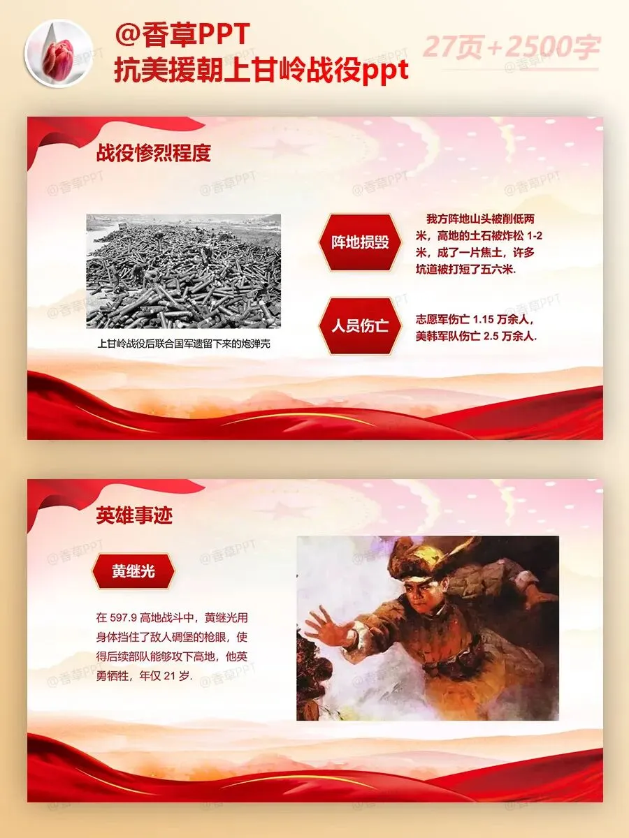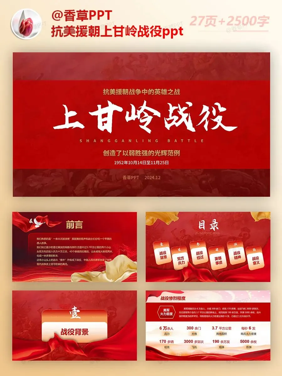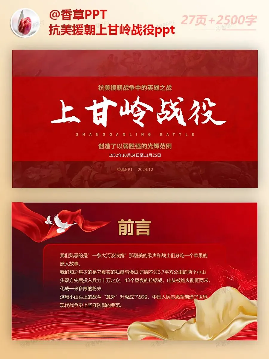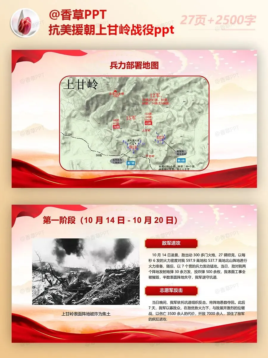 红色研学之上甘岭战役PPT分享,共27页,文字稿2500字,图文均可编辑修改