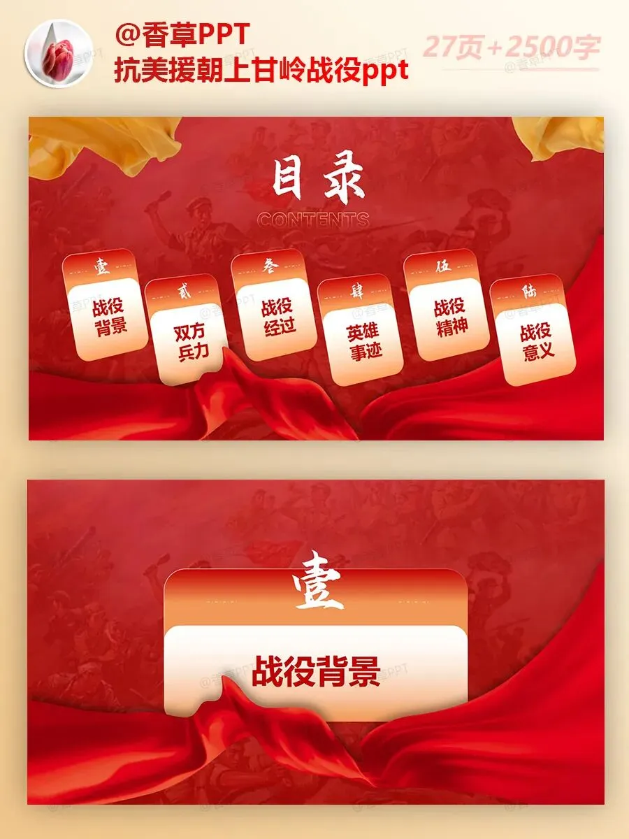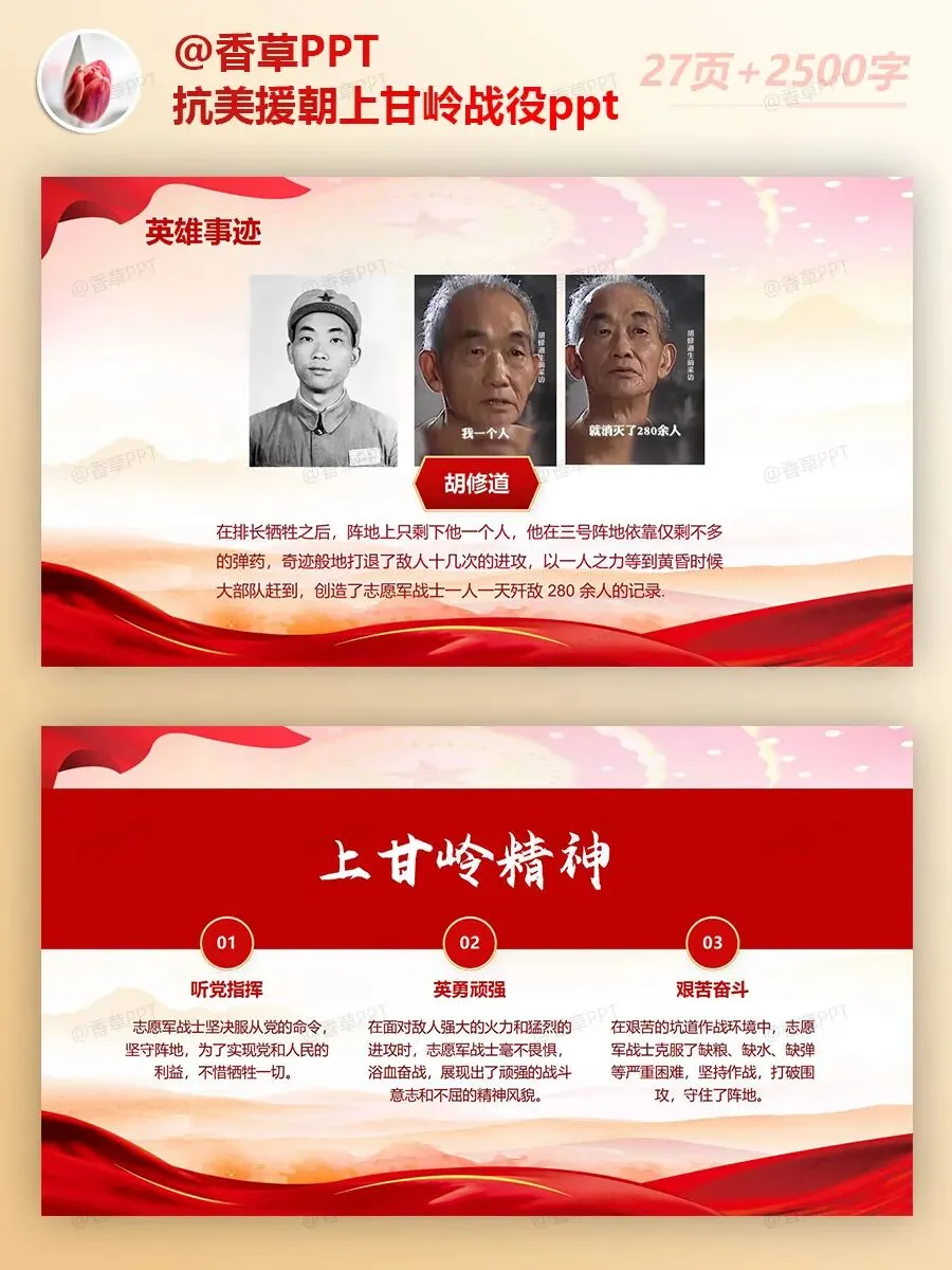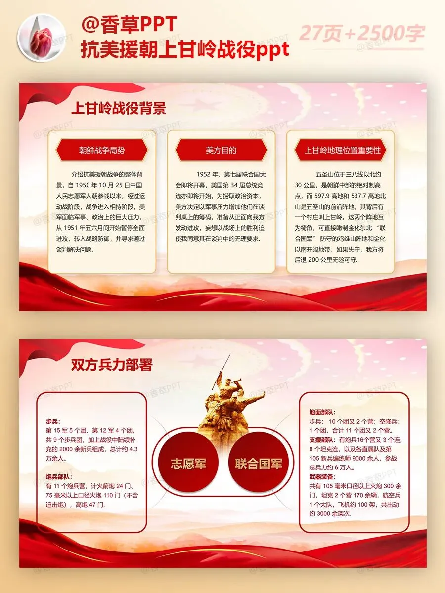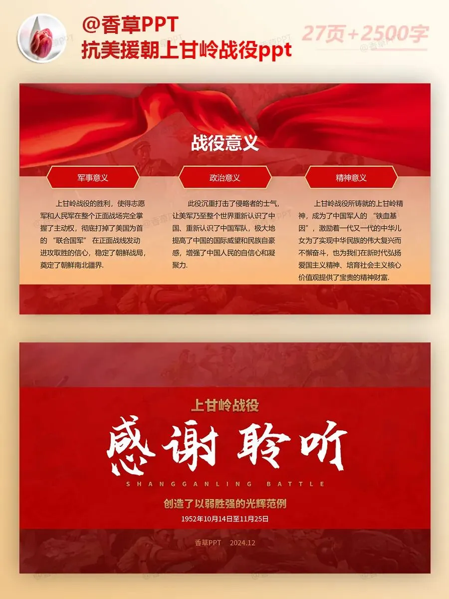 红色研学之上甘岭战役PPT分享,共27页,文字稿2500字,图文均可编辑修改