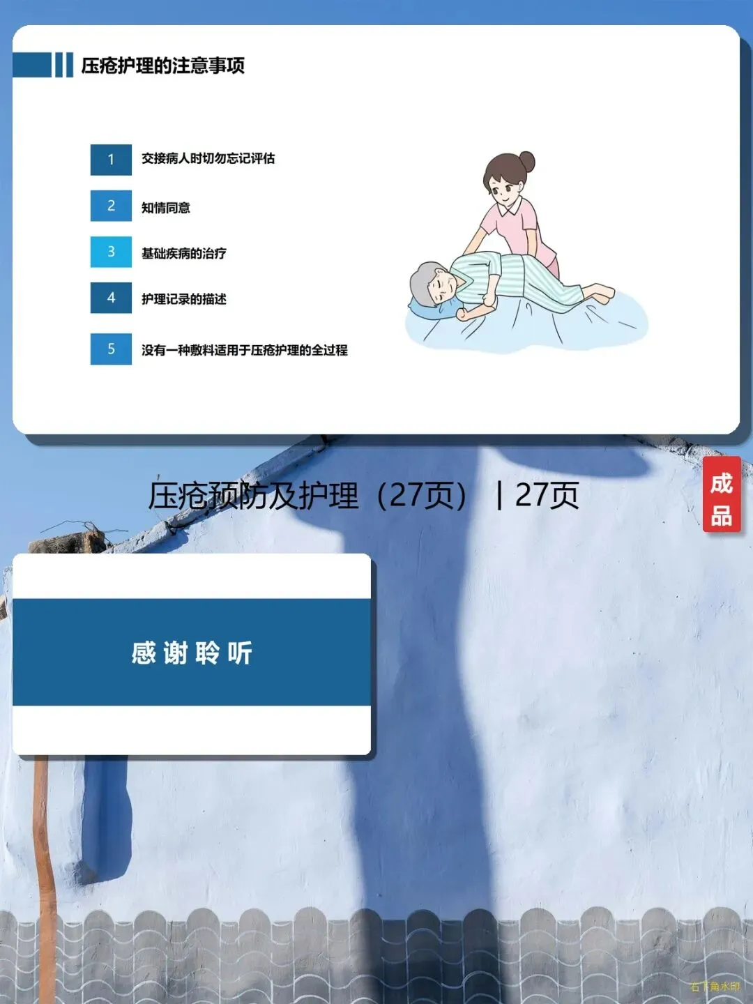 压疮虽然常见,但只要掌握正确的预防和护理方法,就能有效避免。这份PPT就是你的“护理小助手”,赶紧转给身边需要的人吧!