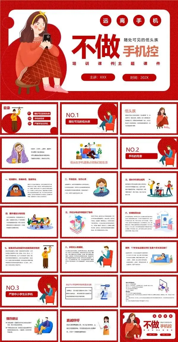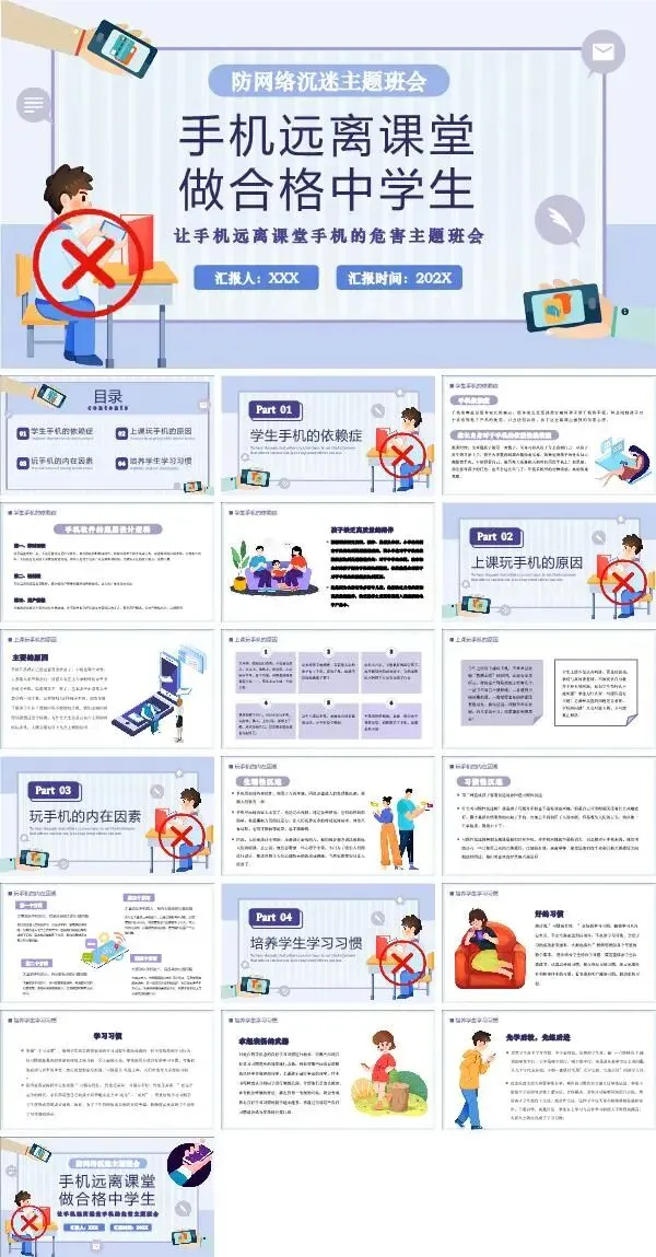 当前青少年手机使用已高度普及,但自制力尚未成熟,易陷入“垃圾快乐”陷阱,如短视频、游戏等低门槛高反馈的即时满足行为,本期给大家分享的是青少年拒绝沉迷手机主题班会ppt课件,涵盖案例分析、沉迷手机的危害、如何合理使用手机等方面内容,引导青少年正确使用手机。篇幅有限,以上仅为部分素材展示,更多拒绝沉迷手机ppt课件,获取方式如下:在编号27文件夹里,大家根据需要去对应的文件夹查找即可,预览图和PPT是对应的。注:曾经有【主题班会】整套资料的朋友们,按照路径自行访问下载即可。