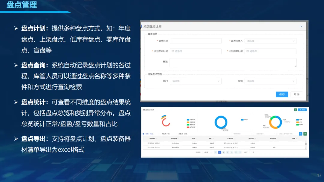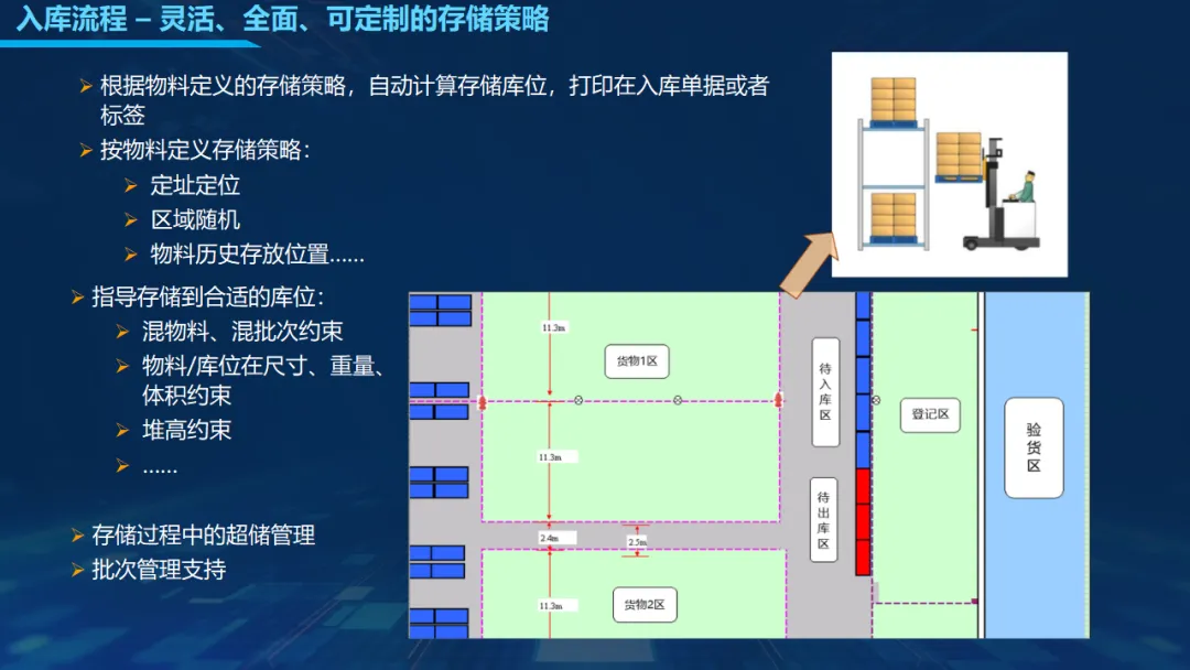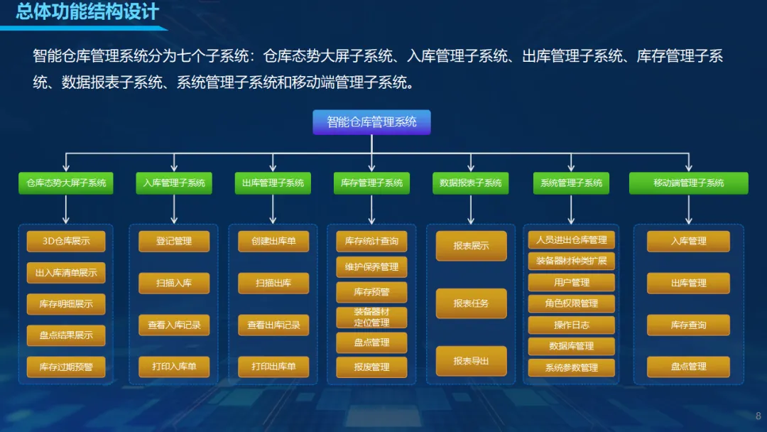 系统采用展示层、核心服务层、数据处理层、数据存储层四层架构,包含仓库态势大屏、入库、出库、库存、数据报表、系统管理、移动端七大子系统,覆盖从收货、上架、拣选、盘点到报表分析全业务流程。通过多仓库分区管理、灵活存储策略、智能路径优化,实现库位精准分配与作业流程标准化;出入库支持批量导入、OCR识别、扫码校验,大幅减少人工操作;盘点支持年度、盲盘、低库存等多种模式,数据实时同步,显著缩短盘点周期。