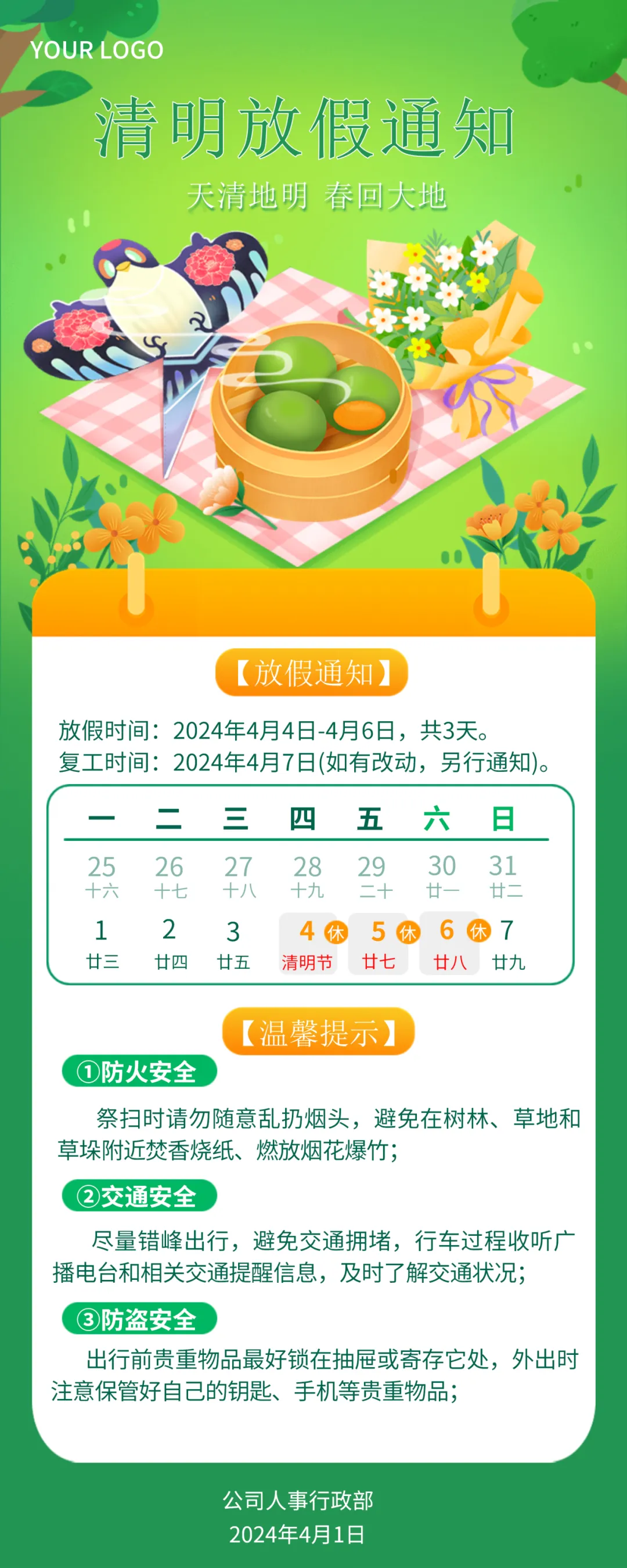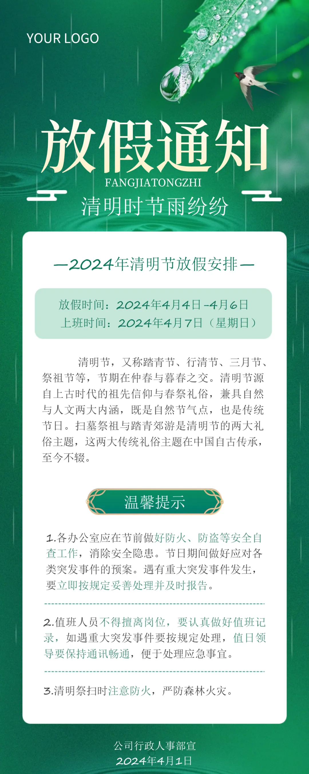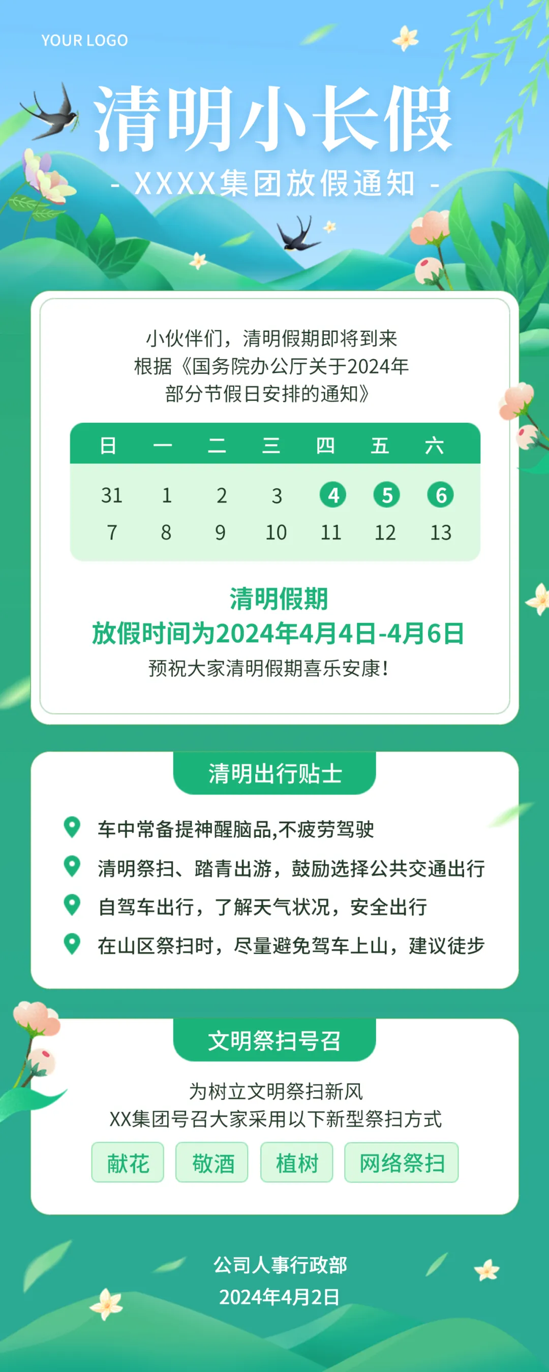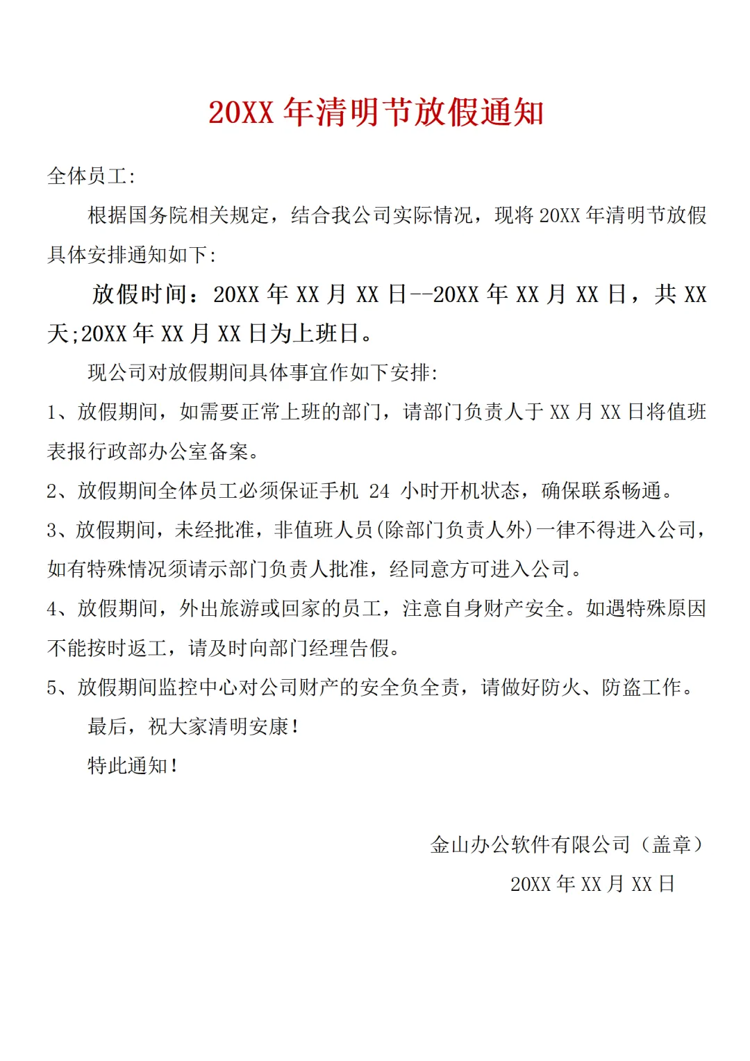 ▼ 清明放假通知文件/海报/注意事项/值班表模板,格式为word/ppt/excel,均可编辑