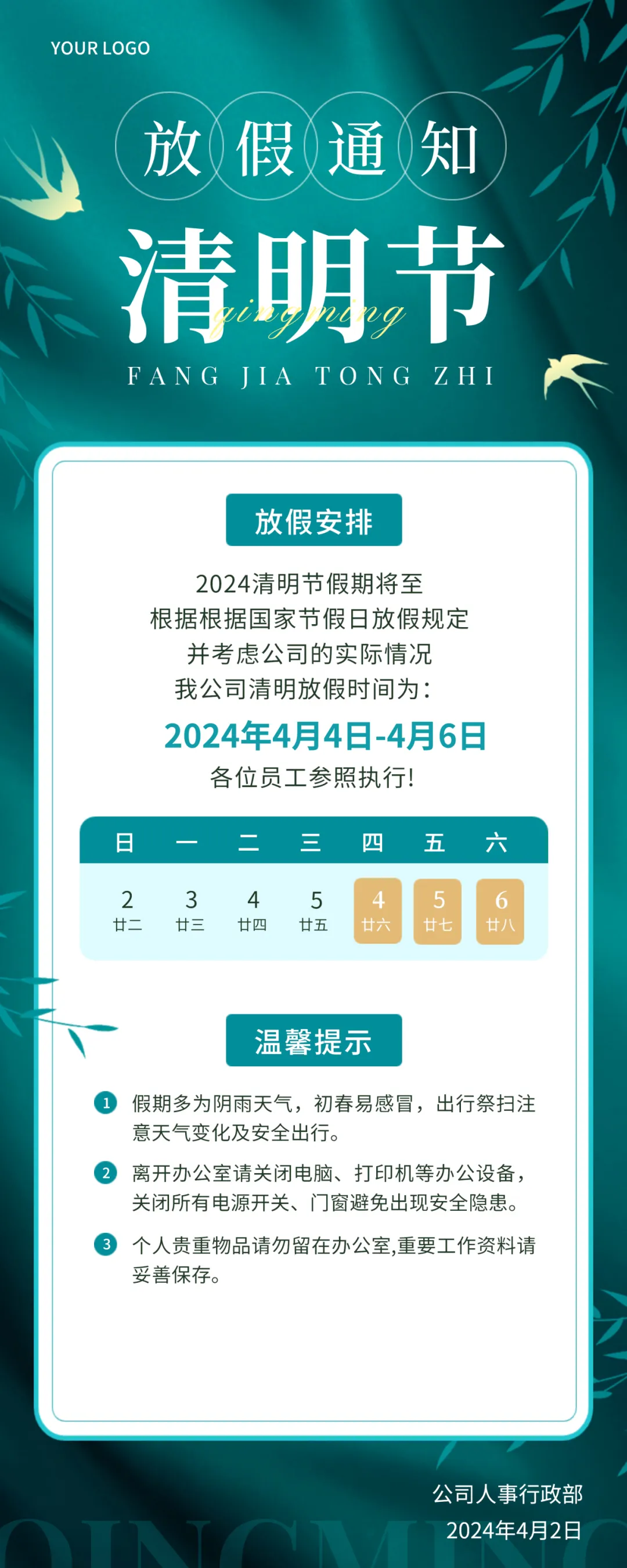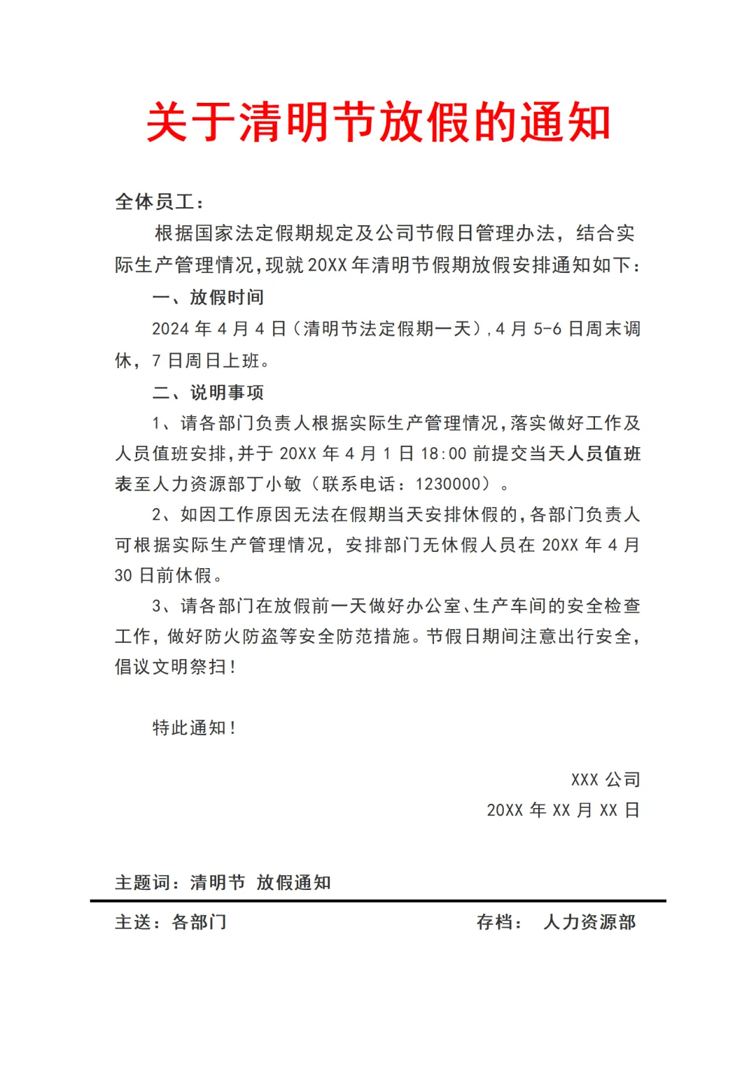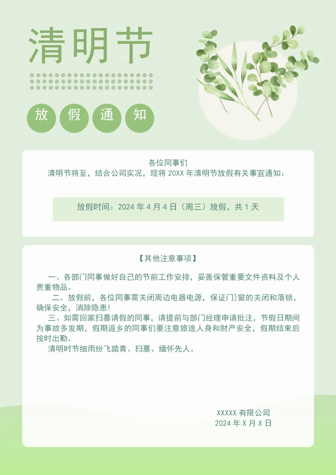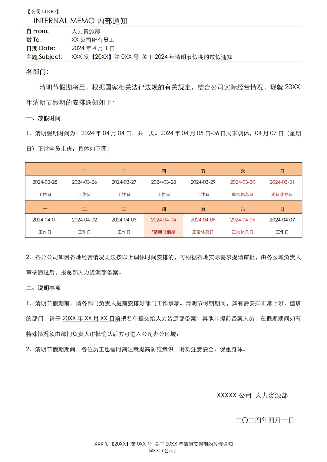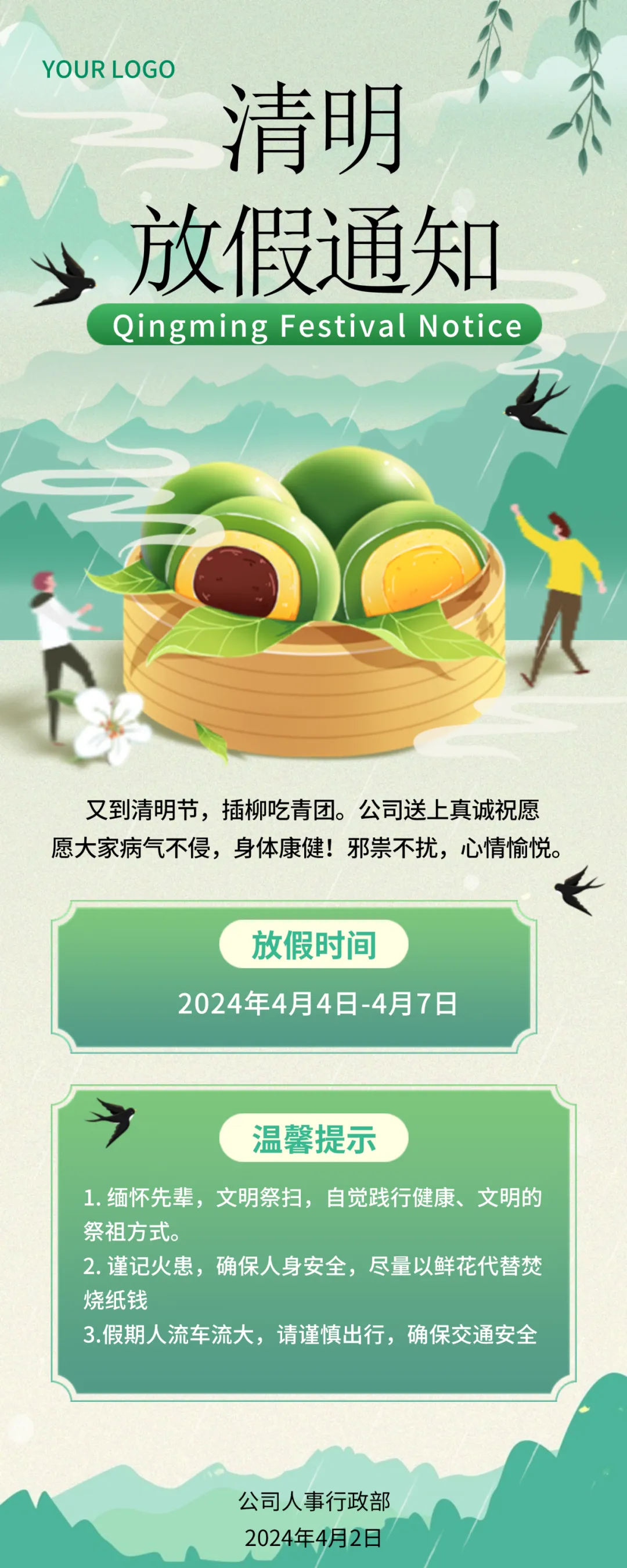▼ 清明放假通知文件/海报/注意事项/值班表模板,格式为word/ppt/excel,均可编辑