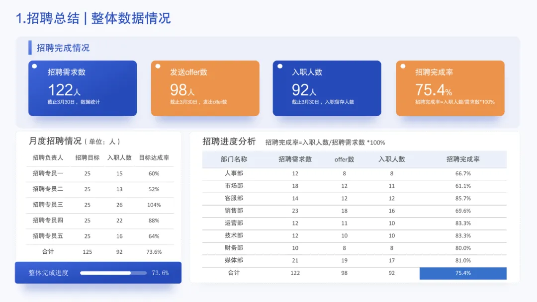 >招聘年终述职报告PPT,清晰又高级,做得太好了!