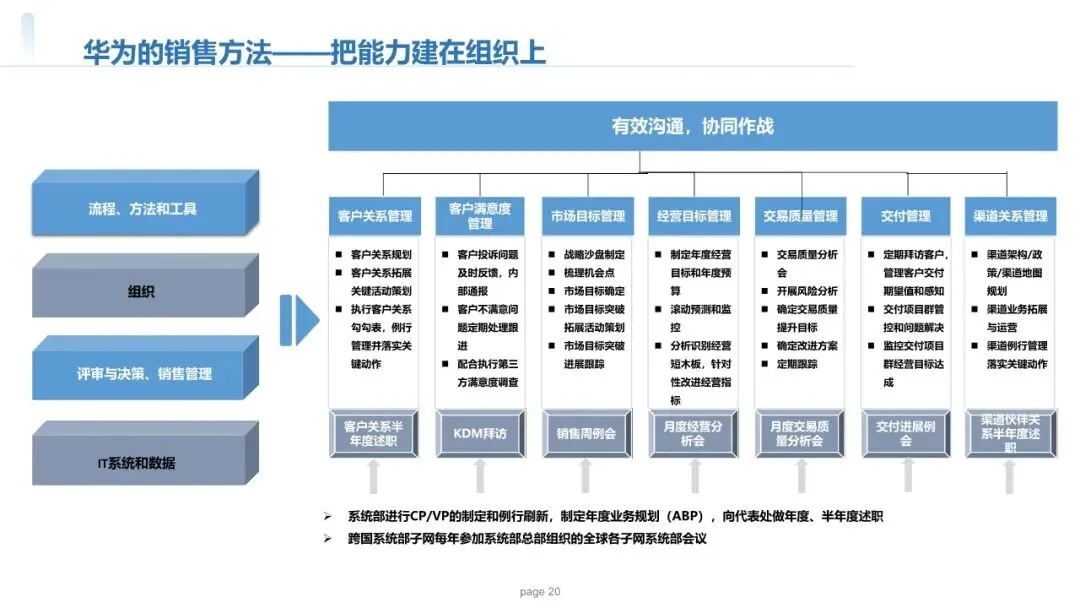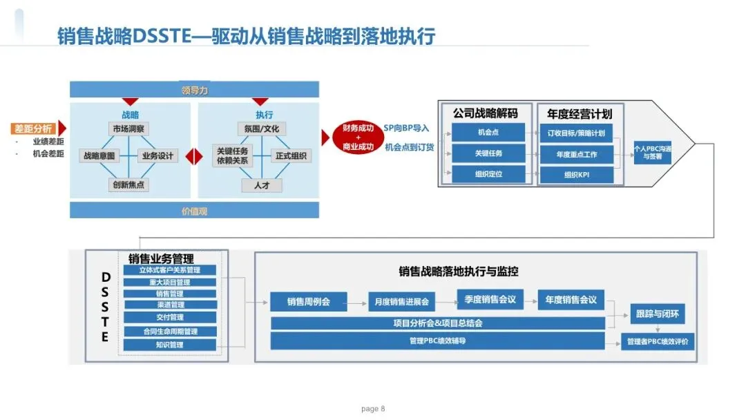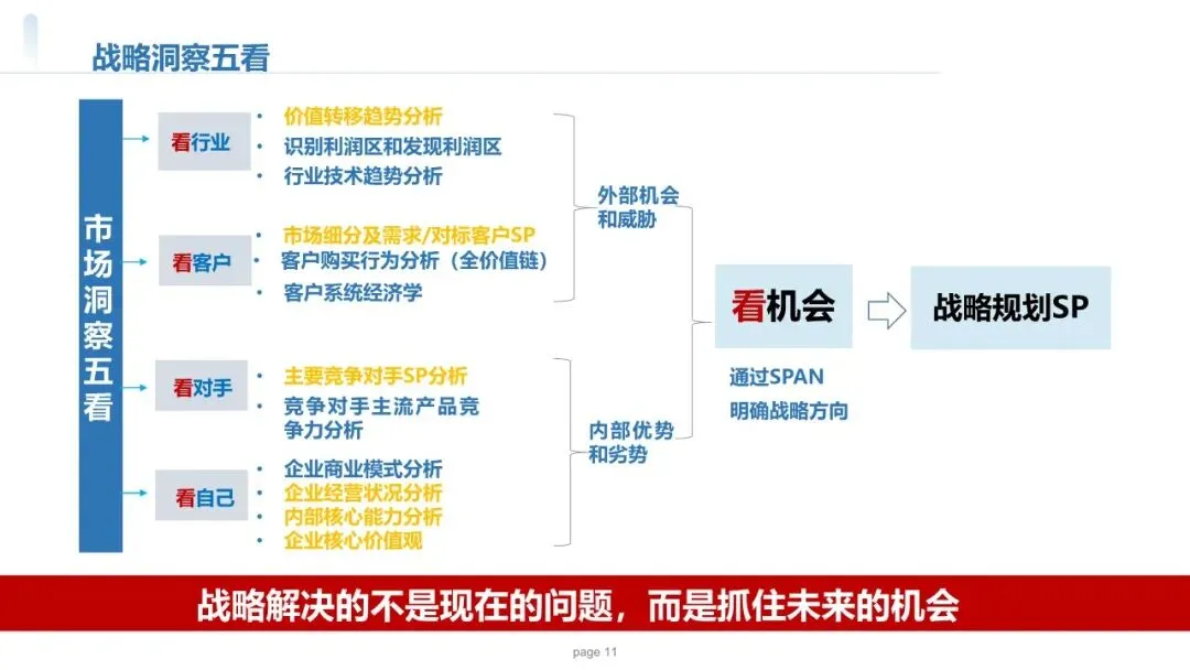 - 机会点管理:高价值线索组建专项小组,五看分析(看环境、行业、客户、竞争、自己),三定(定战略控制点、策略、目标)。