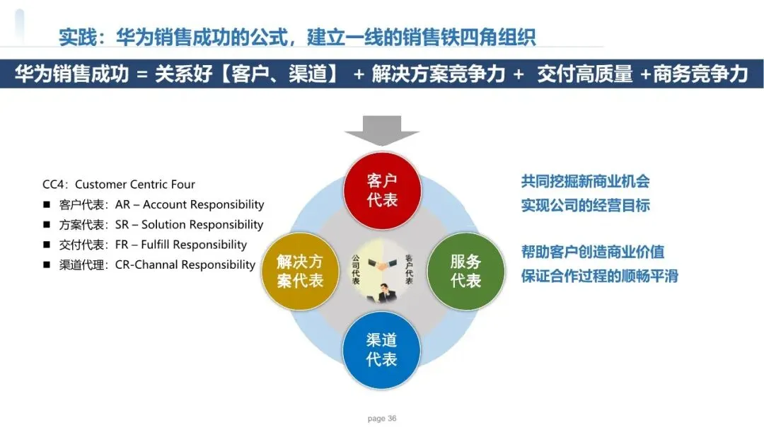 - 铁四角(进阶版):在铁三角基础上增加 CR(渠道经理,伙伴生态协同),覆盖全渠道经营。