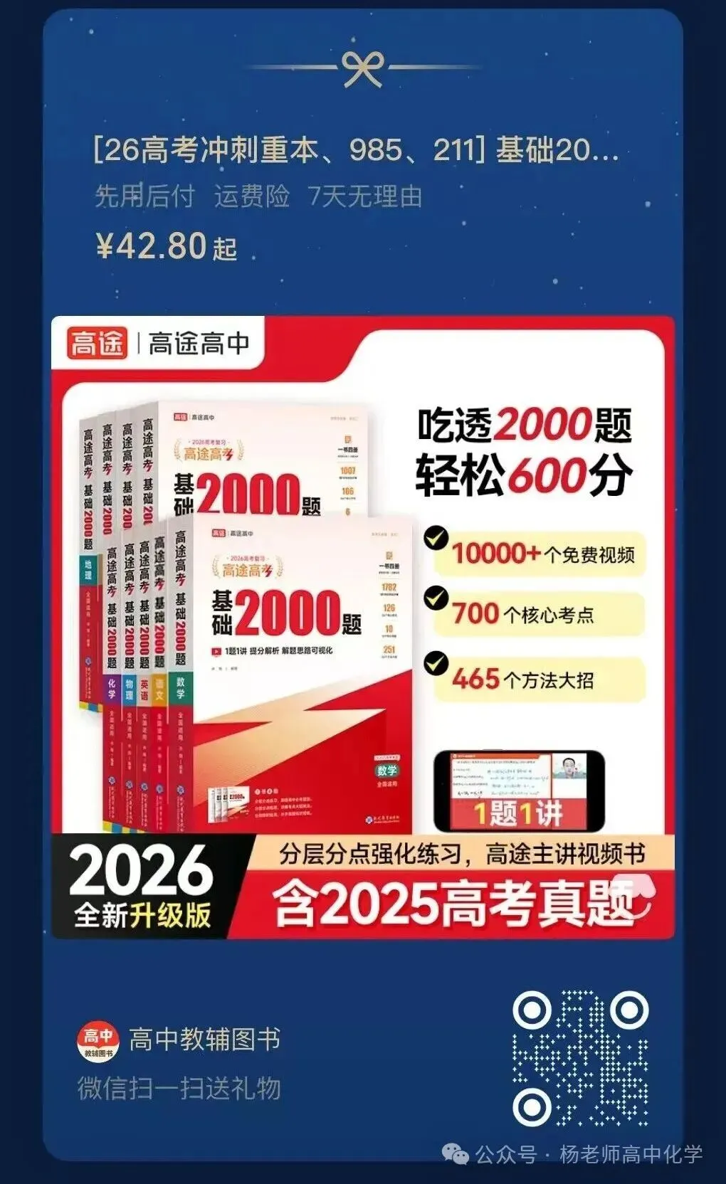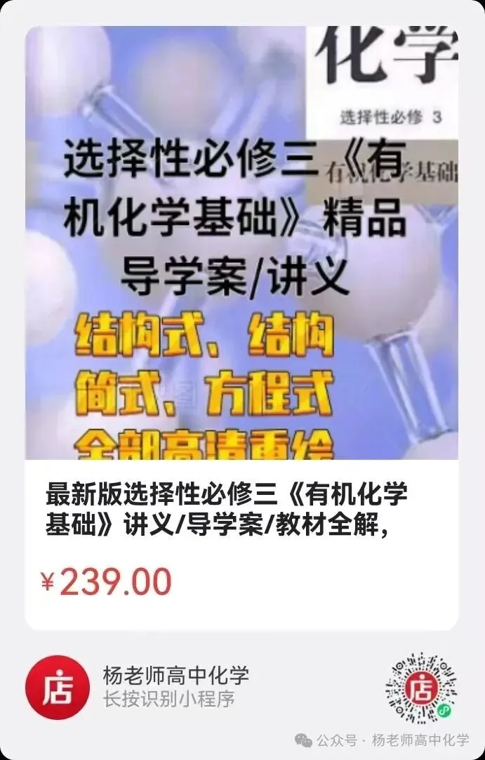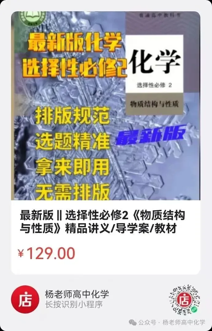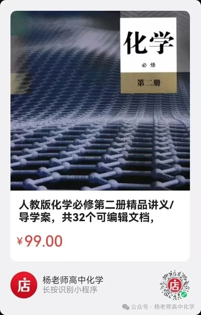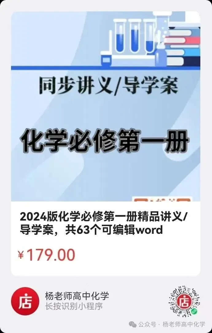 【致各位读者】:因为公众号平台改变了推送规则,如果想正常看到“杨老师高中化学”的推送,.点击手机右上角的“…”;选择“设为星标”。