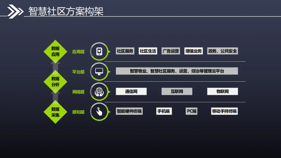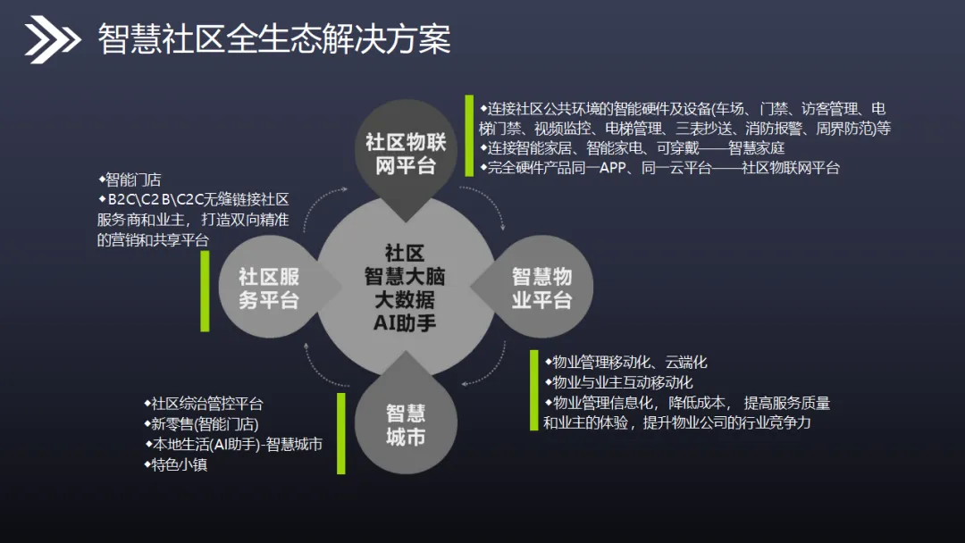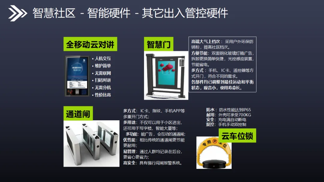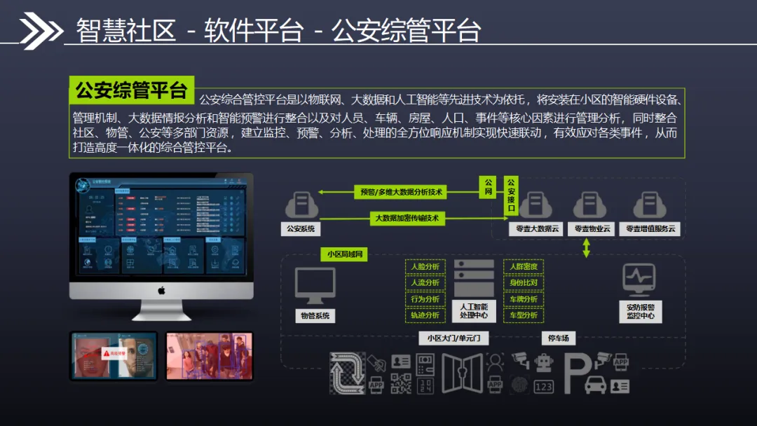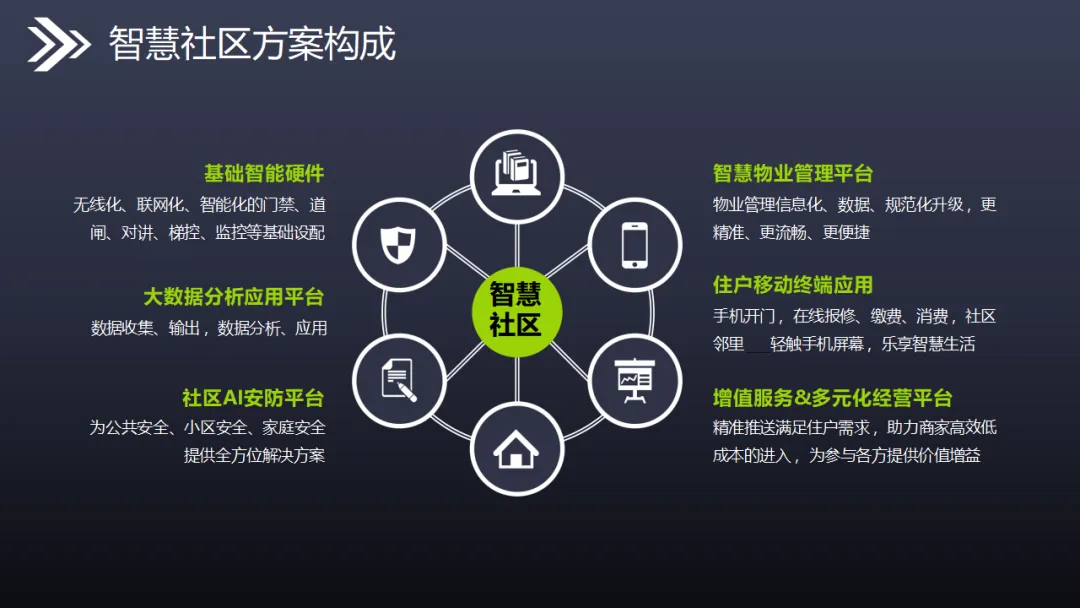 本方案立足智慧城市国家战略,以物联网、大数据、人工智能为技术支撑,构建感知层—网络层—平台层—应用层四层架构,打造集安全、便捷、高效、智能于一体的全生态智慧社区体系,全面解决传统社区管理成本高、服务体验差、安防薄弱等痛点。 方案以万物互联、平台融合、终端协同为核心特性,打通信息孤岛,实现硬件、软件、数据、云端全互通。硬件层面部署智能云门禁、云可视对讲、云停车场、云梯控、人脸识别、通道闸、AI监控等智能设备,采用无线化、免布线设计,大幅降低建设与维护成本,实现无感通行、智能出入、高空抛物监测、人车精准管理。软件平台搭建智慧物业云平台、社区AI安防平台、大数据分析平台、公安综管平台及全媒体广告平台,支撑物业移动办公、远程管控、自动报修、在线缴费、智能巡更等全流程管理。 通过五级防控安防体系,实现社区边界、楼宇、公共区域、房屋室内全方位立体防护,结合黑名单预警、行为分析、轨迹研判等功能,提升社区安全等级。配套社区APP整合小区服务、智能家居、本地生活三大板块,实现刷脸开门、访客授权、远程对讲、一键报修等便捷服务。 方案兼具降本增效、安全宜居、智能运营优势,推动社区从传统管理向数字化、精细化、智能化升级,为居民提供安全舒适、便捷高效的居住体验,助力智慧城市落地。