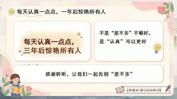 【考后分析】期中试后分析主题班会ppt:告别“差不多”,做认真的自己(附文字稿)