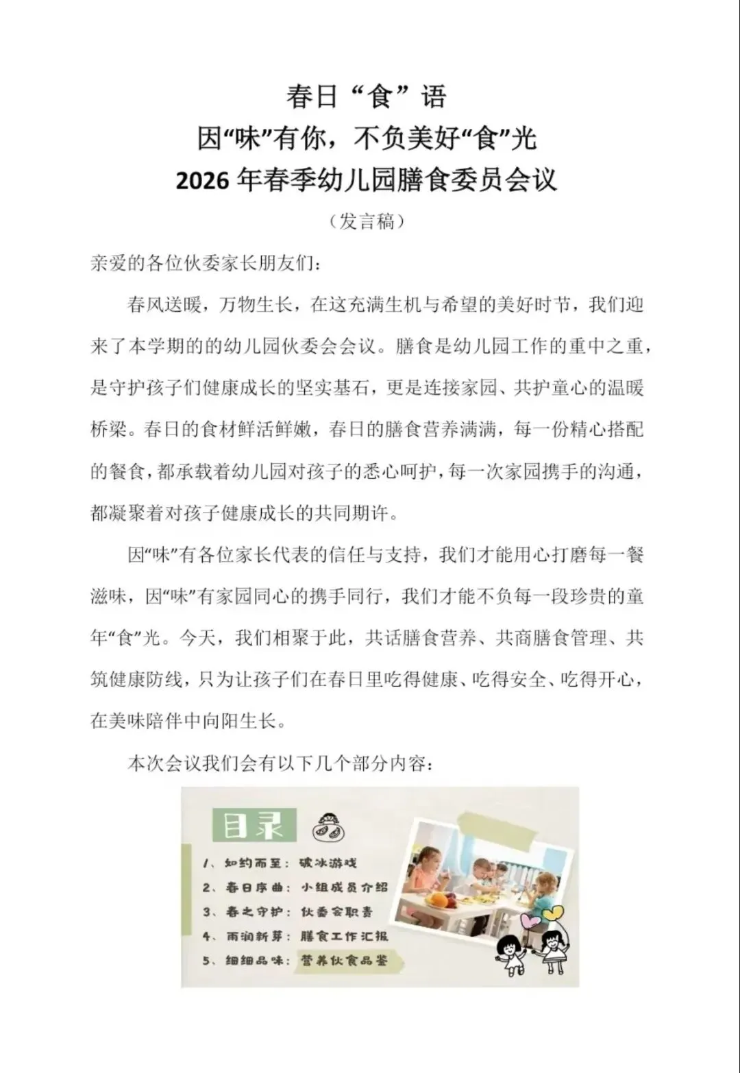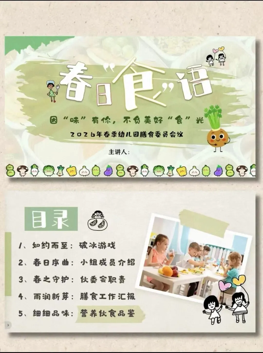 幼儿园膳食委员会(春日食谱)会议PPT+文稿+方案