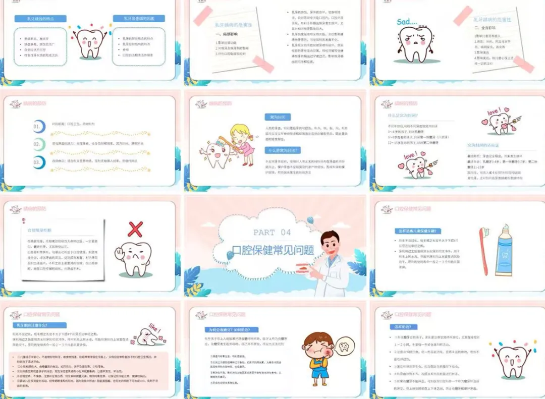 今天我向大家汇报的主题是《儿童牙齿口腔保健常识》。在我们的日常工作中发现,儿童口腔问题非常普遍,尤其是一些常见口腔情况,如果不及时干预,会严重影响孩子的咀嚼、发音甚至恒牙发育。下面,我将重点介绍儿童常见的口腔情况,并着重讲解其中发生率最高、危害最大的一种——奶瓶性蛀牙。
