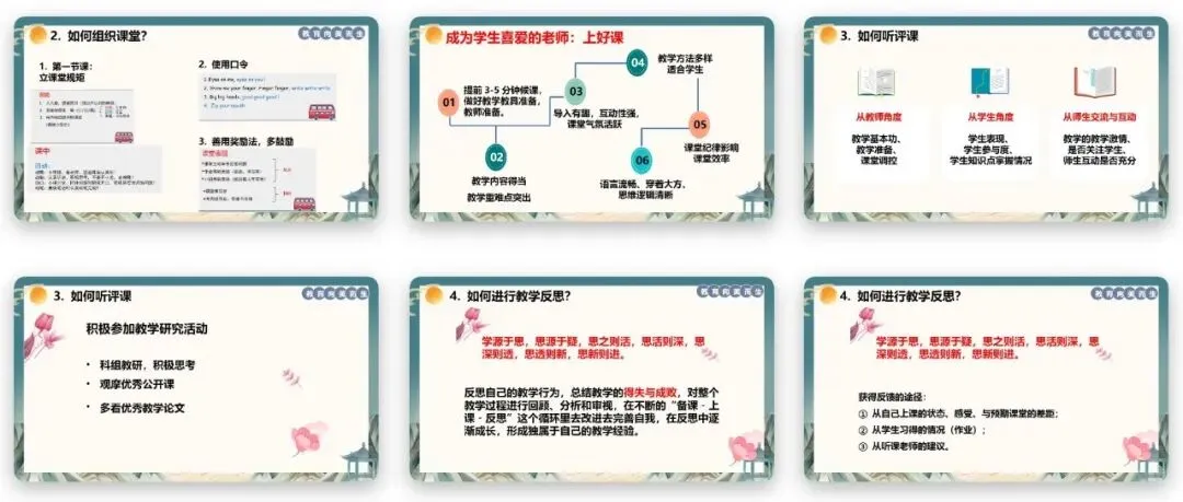 教研板块是成长根基,包括听课评课、科组教研活动参与、教学反思总结等,是新教师快速适配岗位的核心成长路径。