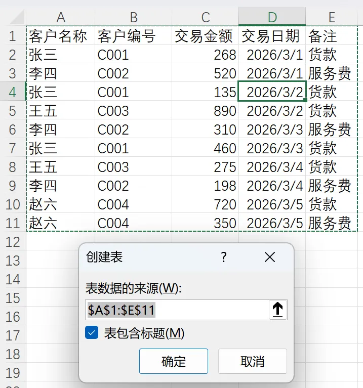 按快捷键:Ctrl+T(一秒变身智能表格)