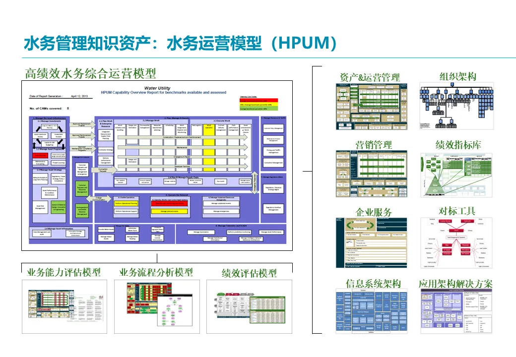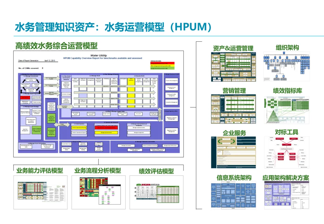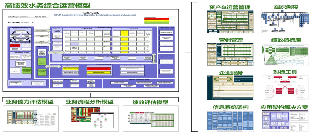 解决方案的起点是建立全面的洞察基础。埃森哲将运用其独有的高绩效水务模型(HPUM) 等知识资产,从外部(政策、市场、竞争格局)和内部(财务价值分析、业务能力诊断)进行双维扫描。关键工具是 “增长树”与“增长立方体” ,旨在系统性地探索从核心业务优化到地域/业务延伸的8大增长可能性,并结合内外部分析筛选出最具潜力的“增长领域”,确保战略选择建立在数据分析而非直觉之上。
