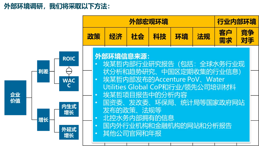 这份文档是埃某哲为北某水务集团制定的五年战略规划项目建议书。核心背景是,北控水务在过去凭借政策红利、资本优势与卓越整合能力实现了超常规增长,已成为行业龙头。然而,面对新建项目减少、竞争加剧、利润率承压的新环境,公司亟需从“规模扩张”转向“有质量的价值增长”,明确未来五年实现“业务高速发展”与“企业稳健成长”的具体路径。