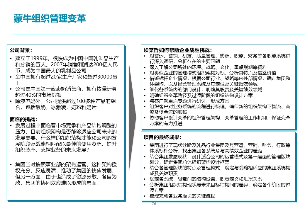 解决方案的闭环在于落地。埃森哲将汇总各业务战略,制定一份详细的、涵盖202X年至2018年的具体行动计划和资源投入路线图。同时,为确保组织能支撑新战略,方案会评估并提出集团管控模式、总部组织架构的高阶优化建议,并规划关键的职能领域能力建设举措,从组织与能力上为战略实施“护航”。