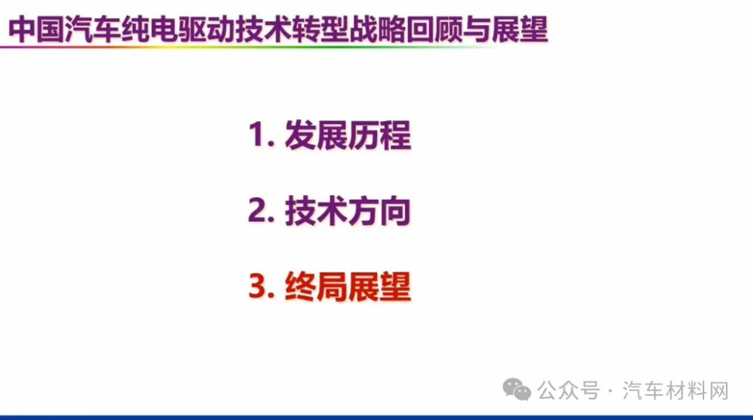 清华大学教授欧阳明高发表《中国汽车纯电驱动技术转型战略回顾与展望》主旨演讲,系统复盘中国新能源汽车从战略奠基到市场爆发的完整历程,并对“十五五”技术方向、产业模式与长期终局作出权威判断。主旨演讲传递了一个极其丰富的信息和明确的信号:“跟随模式”已经失效,从“单项技术突击”向“全技术体系竞争”的终局之战已经打响。