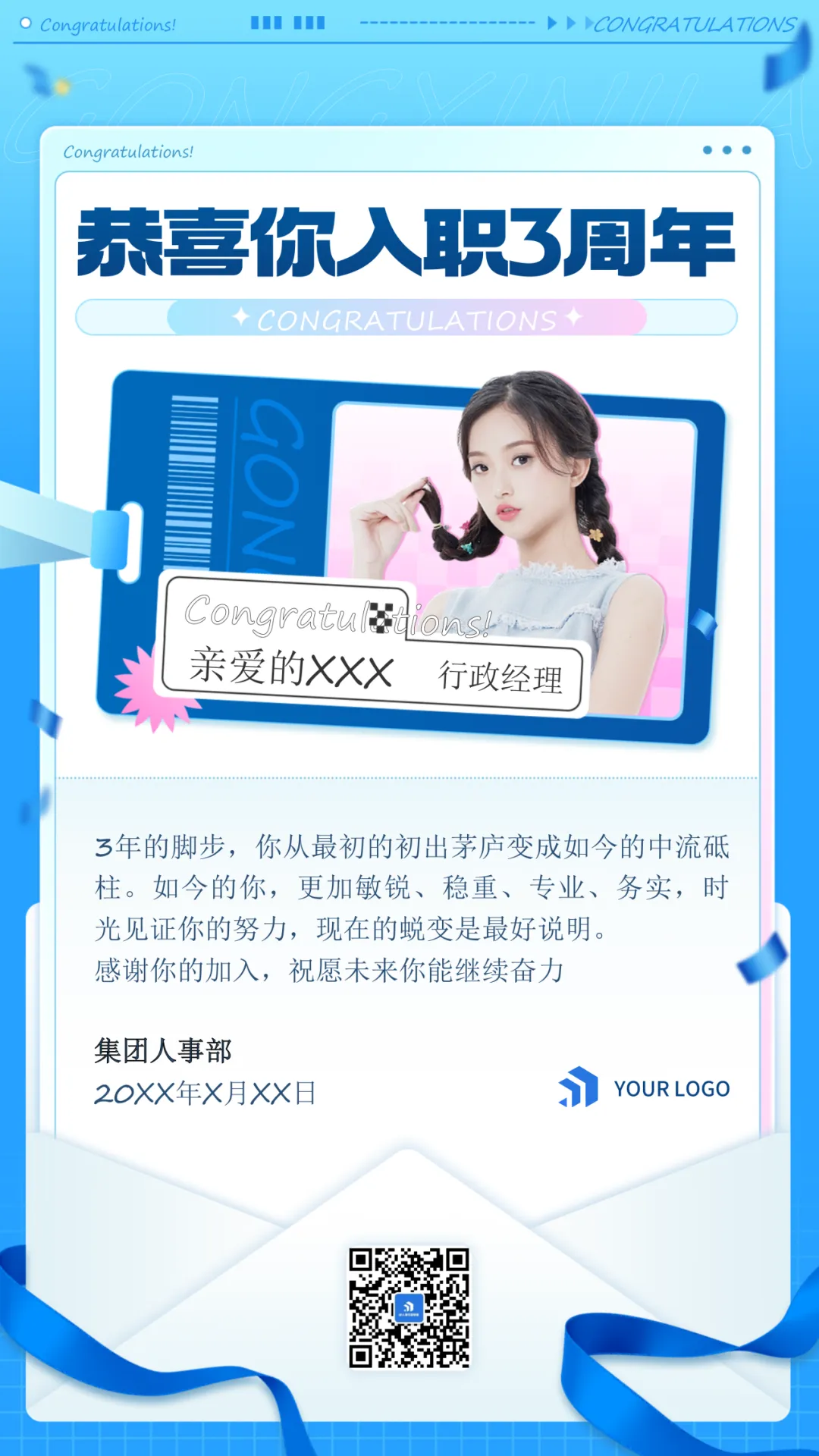 获取方式见文末。文件夹位置:行政管理板块—042 入职周年贺卡